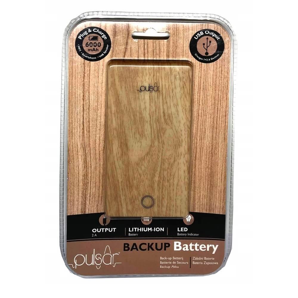 Pulsar Power Bank 6000 mAh - компактна външна батерия с 2xUSB изхода за мобилни устройства (кафяв)
