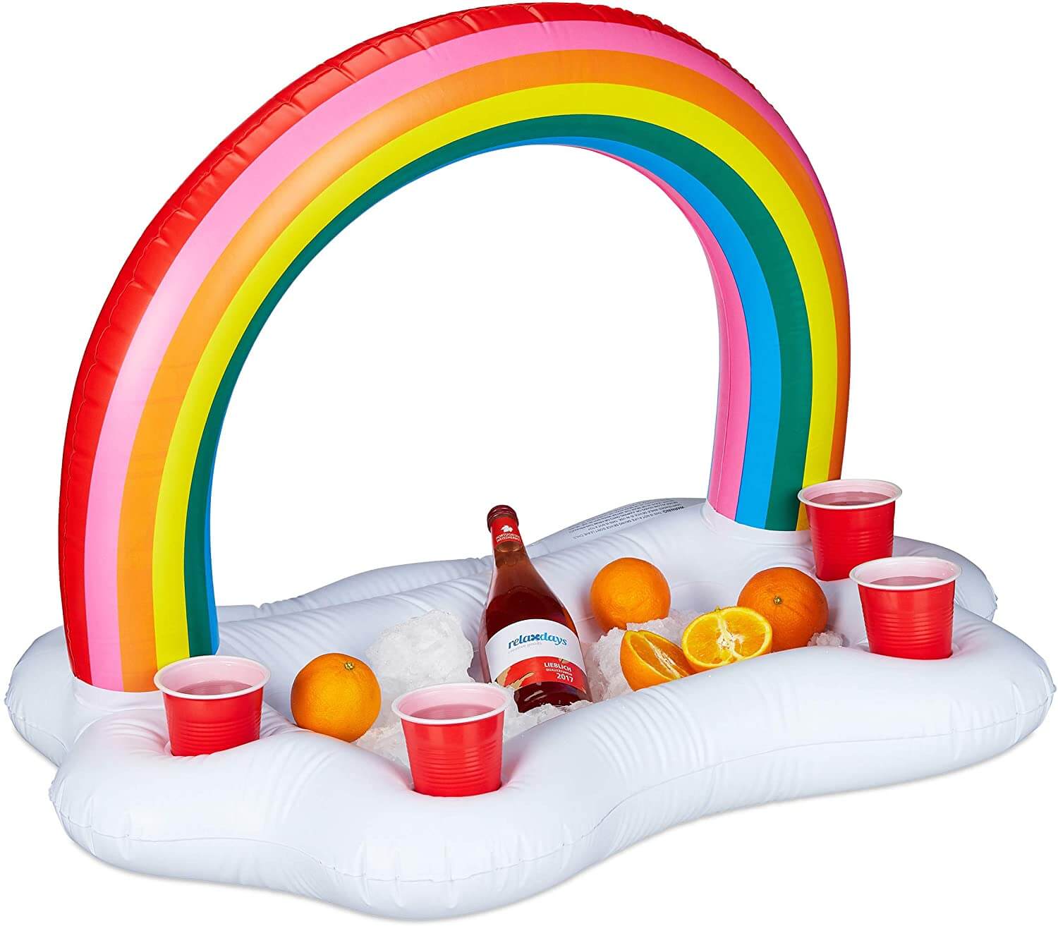 Relaxdays Inflatable Pool Drink Holder Rainbow - надуваема поставка за напитки за плаж (шарен)