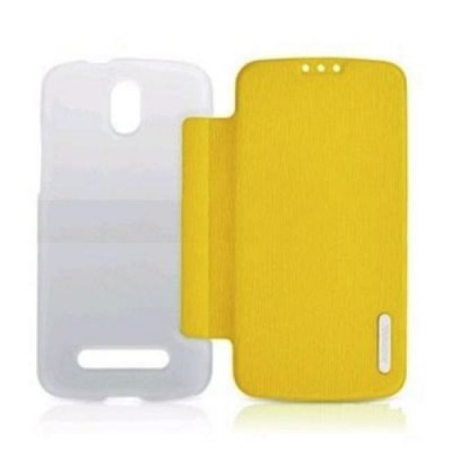 Remax Leather Case - кожен кейс с твърда задна част за HTC Desire 500 (жълт)