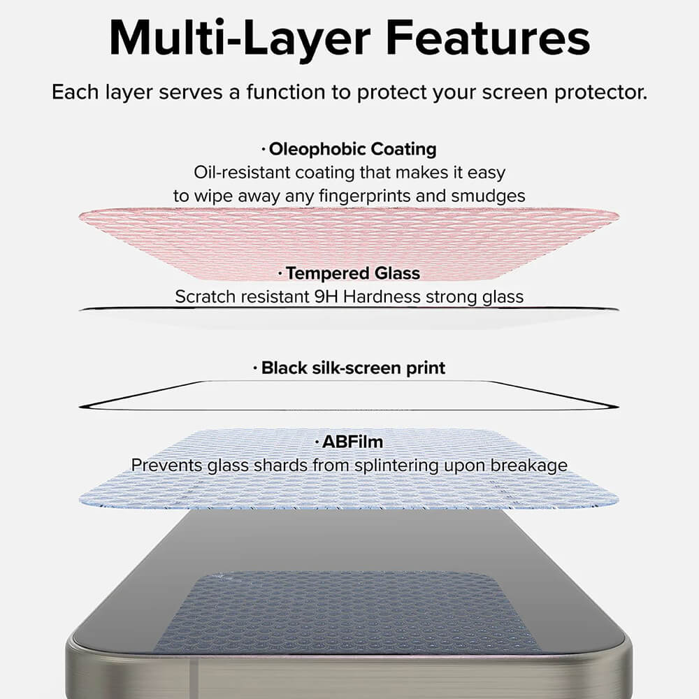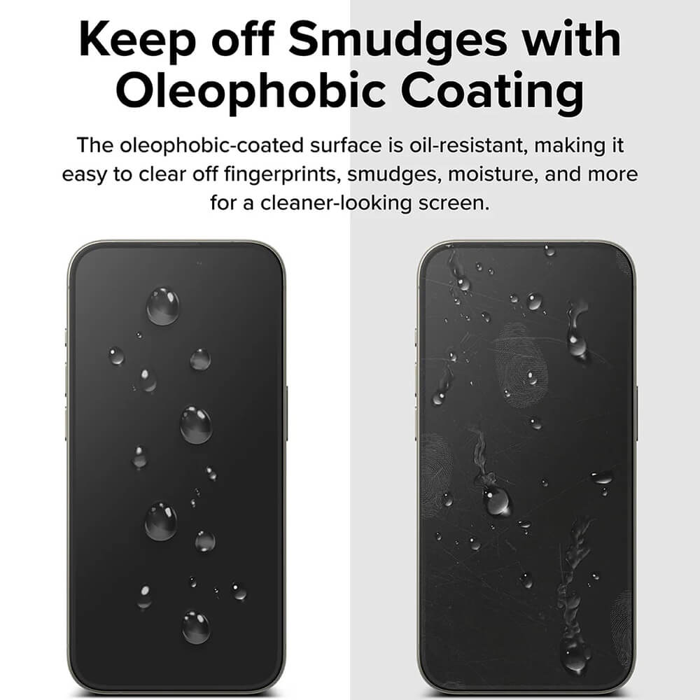 Ringke Easy Slide Tempered Glass 2 Pack - 2 броя калени стъклени защитни покрития за дисплея на iPhone 16 Pro Max (черен-прозрачен)