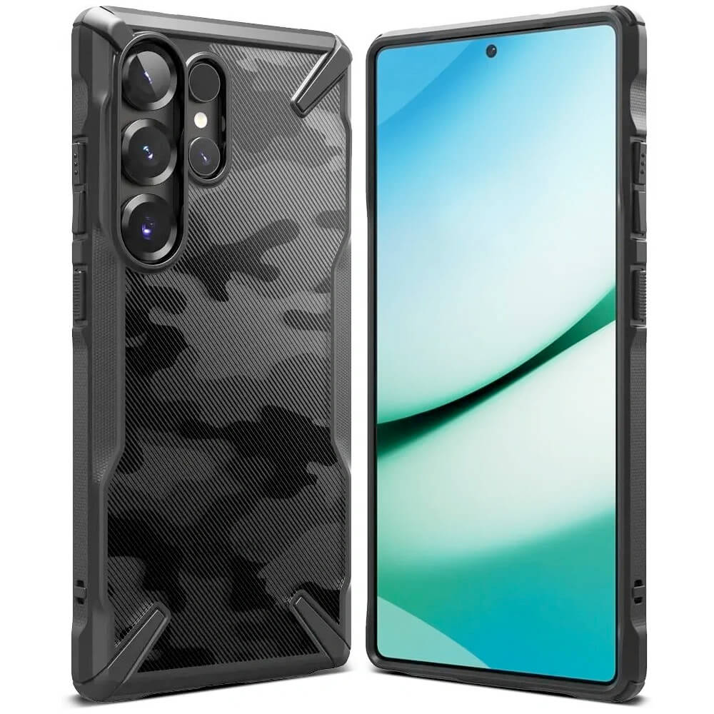 Ringke Fusion-X Case - хибриден удароустойчив кейс за Samsung Galaxy S25 Ultra (черен-камуфлаж)