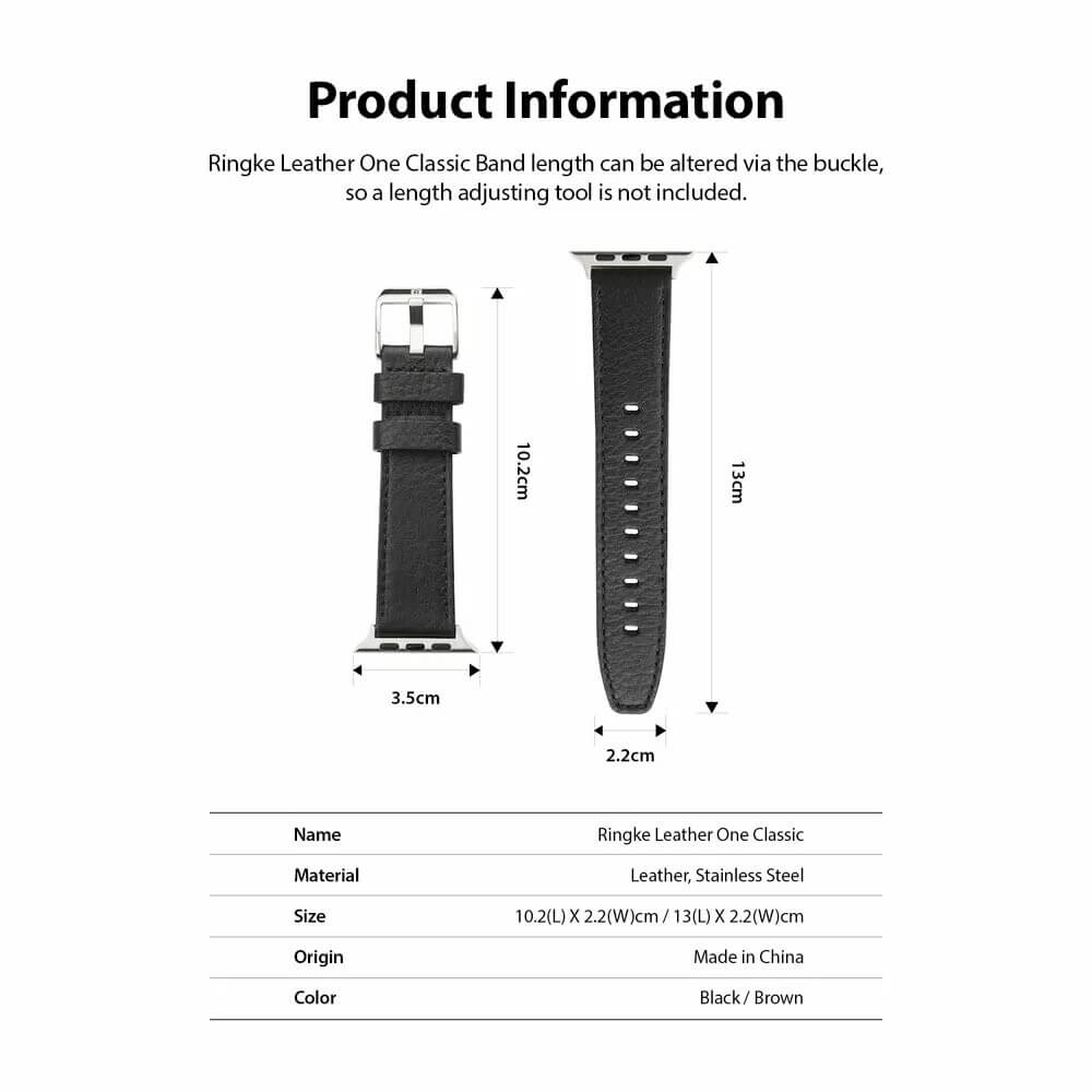 Ringke Leather One Classic Band - кожена (естествена кожа) каишка за Apple Watch 42мм, 44мм, 45мм (черен)