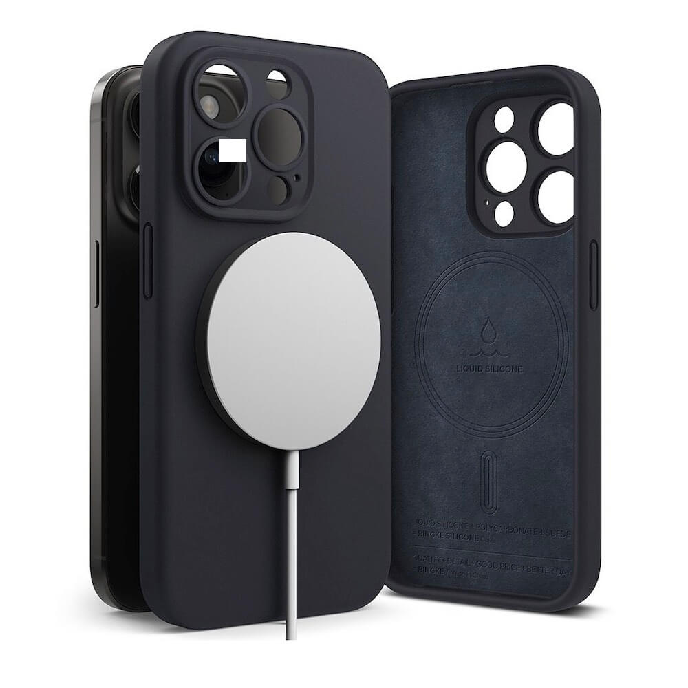 Ringke Liquid Silicone Magnetic Case - силиконов (TPU) калъф с MagSafe за iPhone 15 Pro (тъмносин)