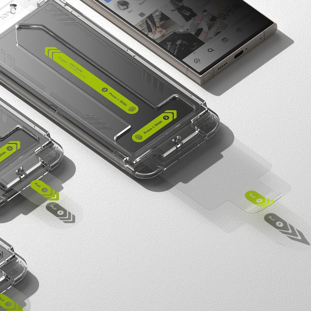 Ringke Privacy Easy Slide Tempered Glass 2 Pack - 2 броя калени стъклени защитни покрития с определен ъгъл на виждане за дисплея на Samsung Galaxy S24 Ultra (прозрачен)