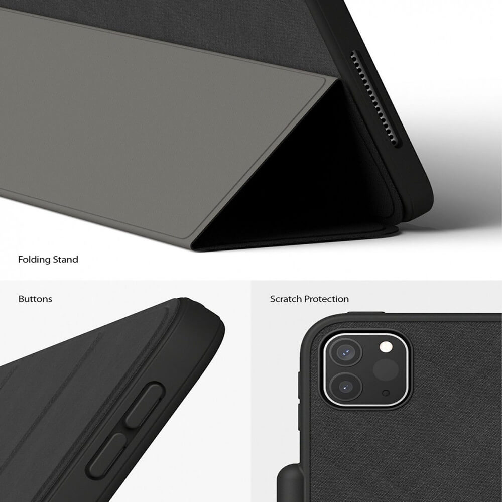 Ringke Smart Case - полиуретанов калъф с поставка и отделение за Apple Pencil 2 за iPad Pro 11 (2020) (черен)