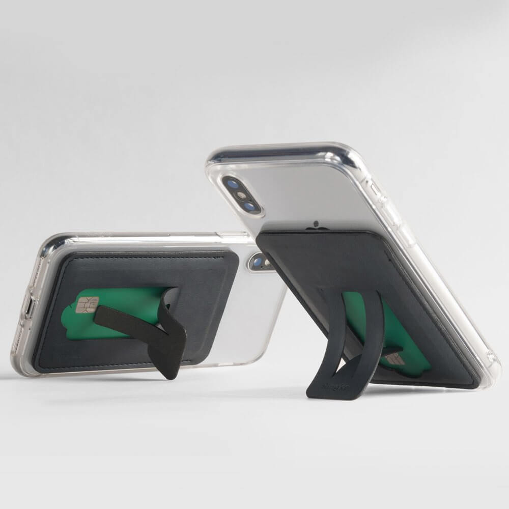 - Практичен портфейл, залепящ се към гърба на вашия смартфон или кейс