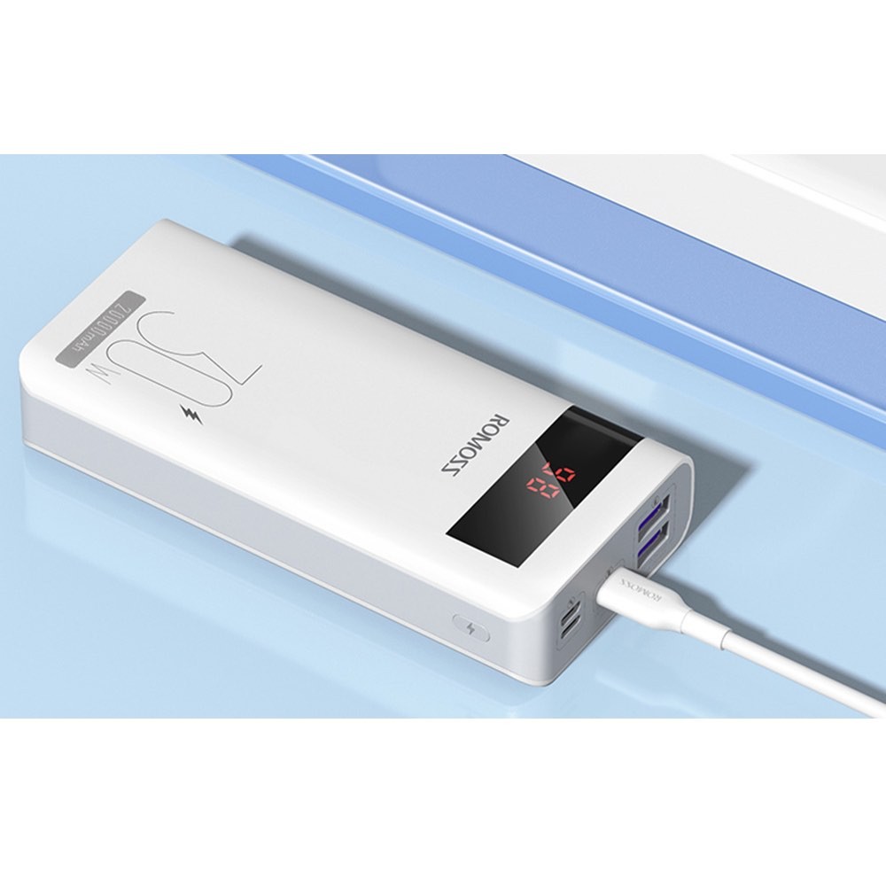 Romoss Sense6PS Pro Power Bank 30W 20000 mAh - външна батерия с два USB-A и един USB-C изходи и технология за бързо зареждане (бял)