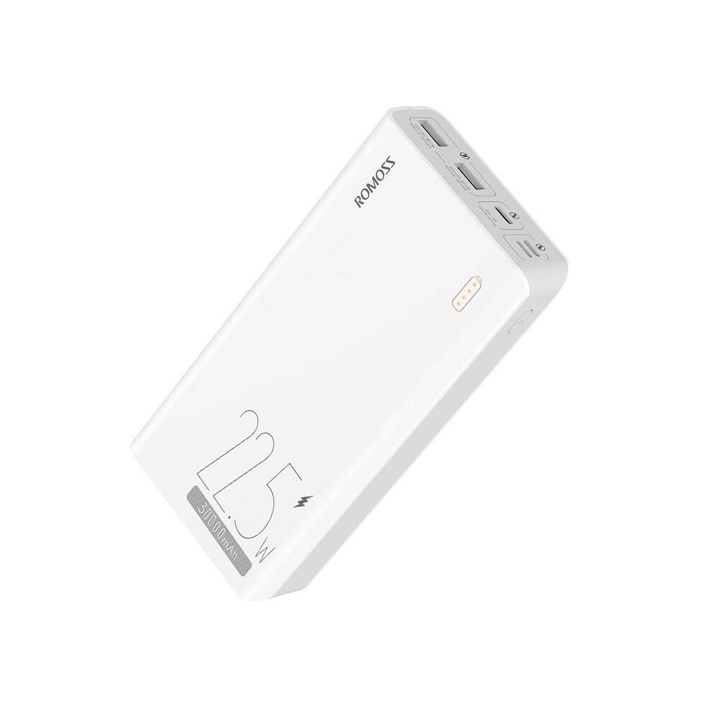 Romoss SENSE8F Fast Charging Power Bank 22.5W 30000 mAh - външна батерия с два USB-A и един USB-C изходи и технология за бързо зареждане (бял)