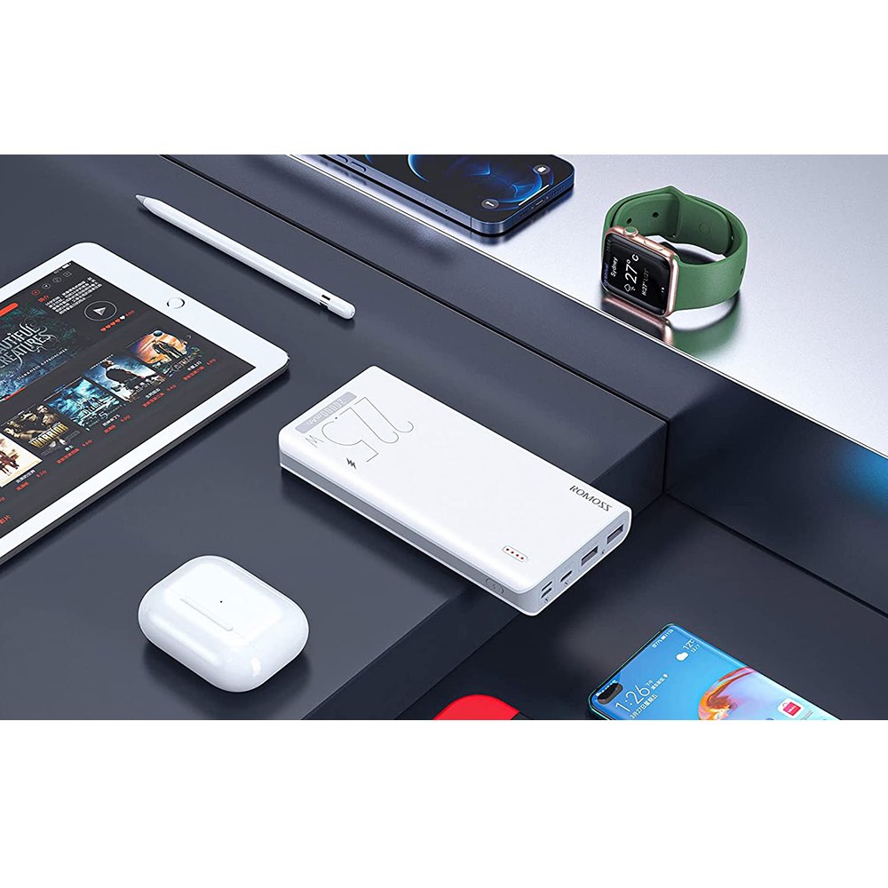 Открийте мощната външна батерия от Romoss, модел Fast Charging Power Bank 22.5W 30000 mAh, идеална за зареждане на вашите мобилни устройства. С капацитет от 30000 mAh и множество портове, този power bank осигурява надеждност и удобство.