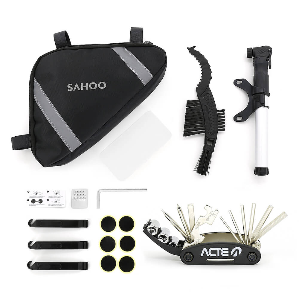 - Не се притеснявайте, че ще останете на пътя при следващата спаднала гума на вашия велосипед. Бъдете подготвени и бързо я ремонтирайте с този комплект на Sahoo