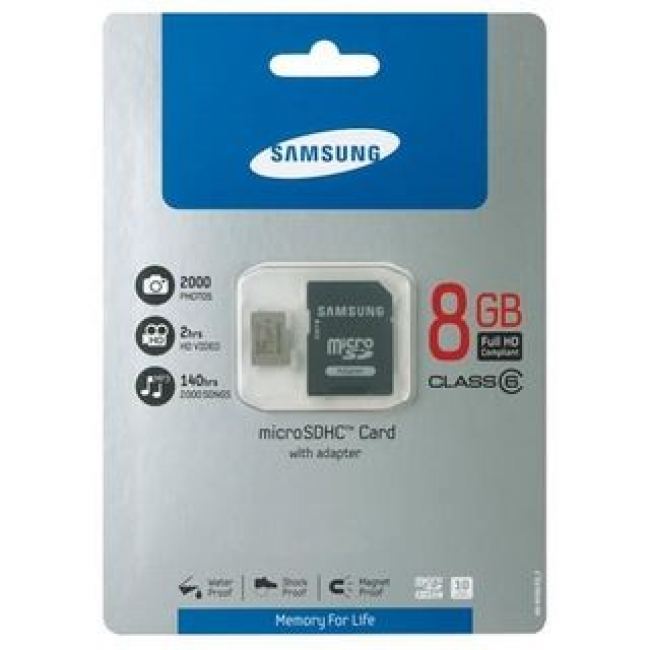 • В комплекта: Samsung micro-SDHC карта памет 8GB Standard, SD адаптер, кутия