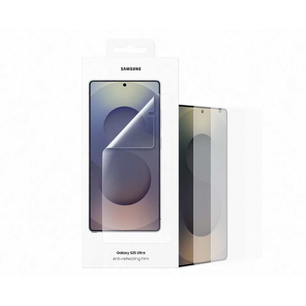 - • Комплект от два броя прозрачни оригинални защитни покрития за дисплея на Galaxy S25 Ultra