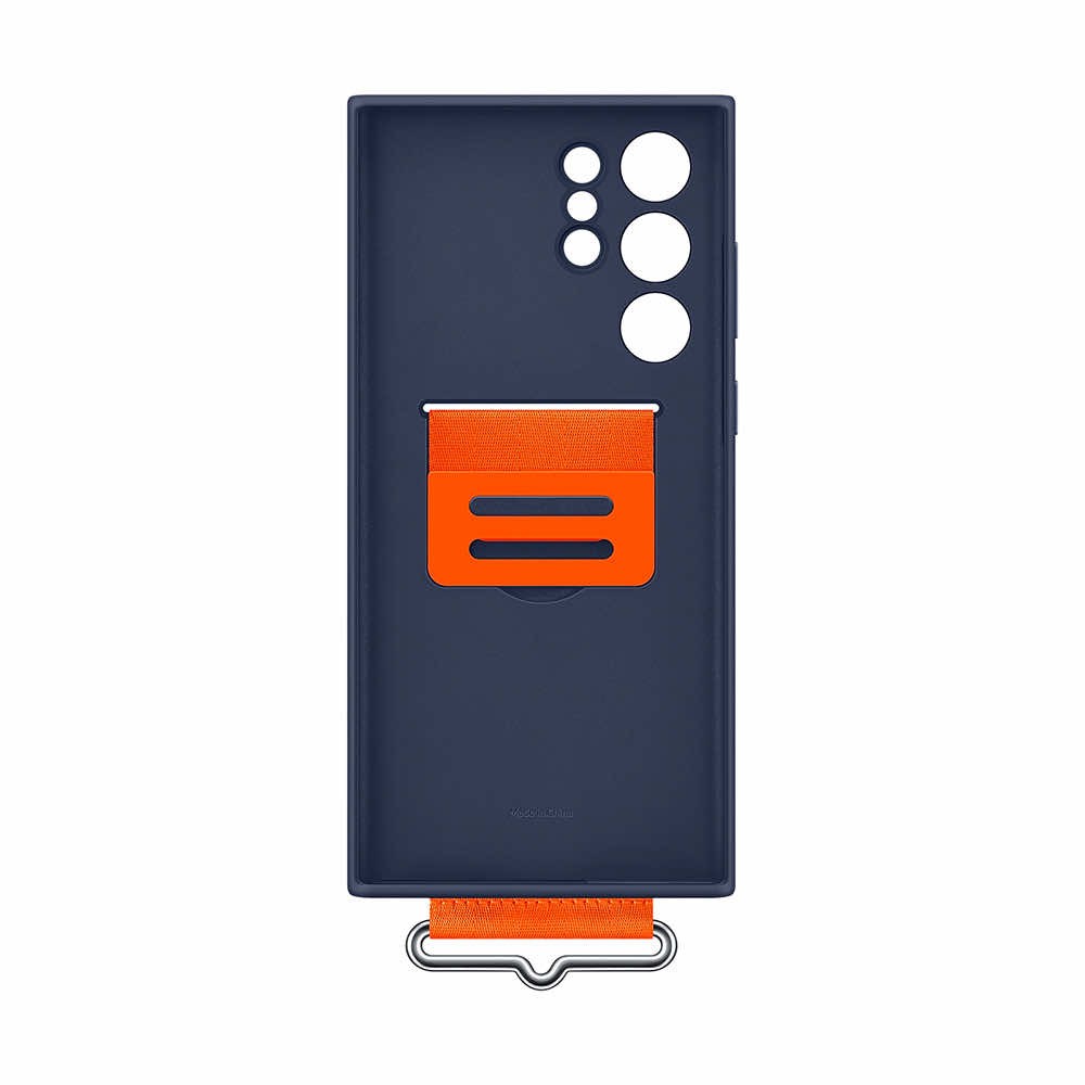 Samsung Silicone Cover With Strap EF-GS908TNEGWW - оригинален силиконов кейс с ластик против изпускане за Samsung Galaxy S22 Ultra (тъмносин)