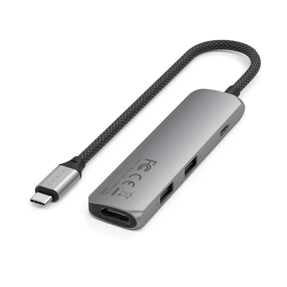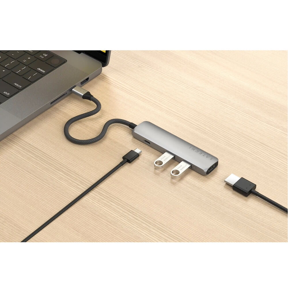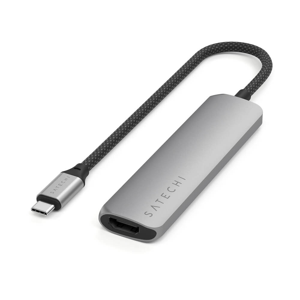 Satechi 4-in-1 USB-C Aluminum Slim Multiport Adapter 4K - мултифункционален хъб за свързване на допълнителна периферия за компютри с USB-C (тъмносив)