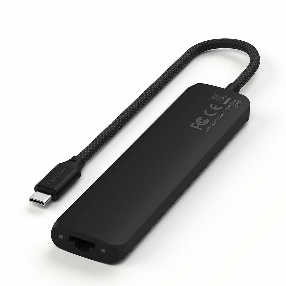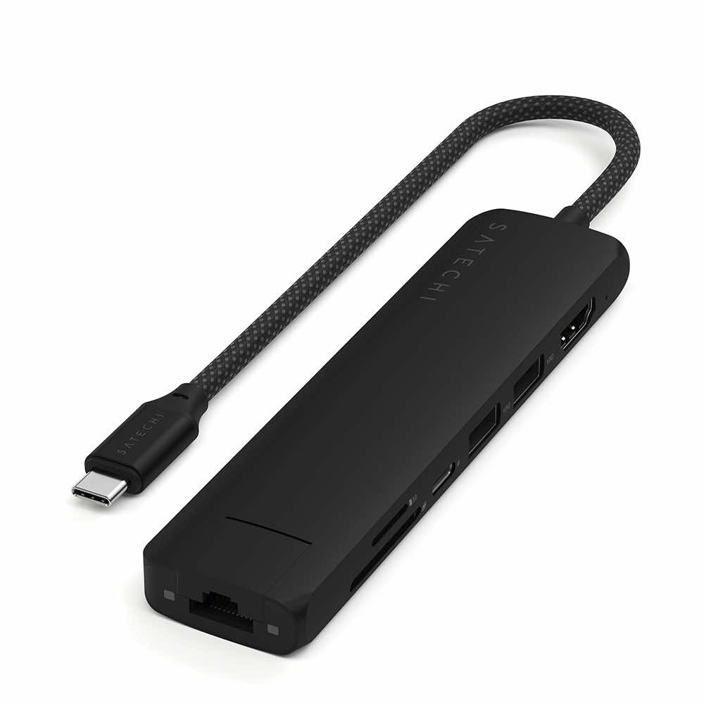 Satechi 7-in-1 USB-C Aluminum Slim Multiport Adapter With Ethernet - мултифункционален хъб за свързване на допълнителна периферия за компютри с USB-C (черен)