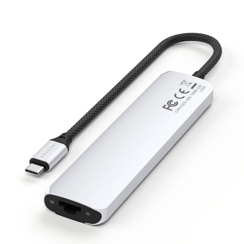 Satechi 7-in-1 USB-C Aluminum Slim Multiport Adapter With Ethernet - мултифункционален хъб за свързване на допълнителна периферия за компютри с USB-C (сребрист)