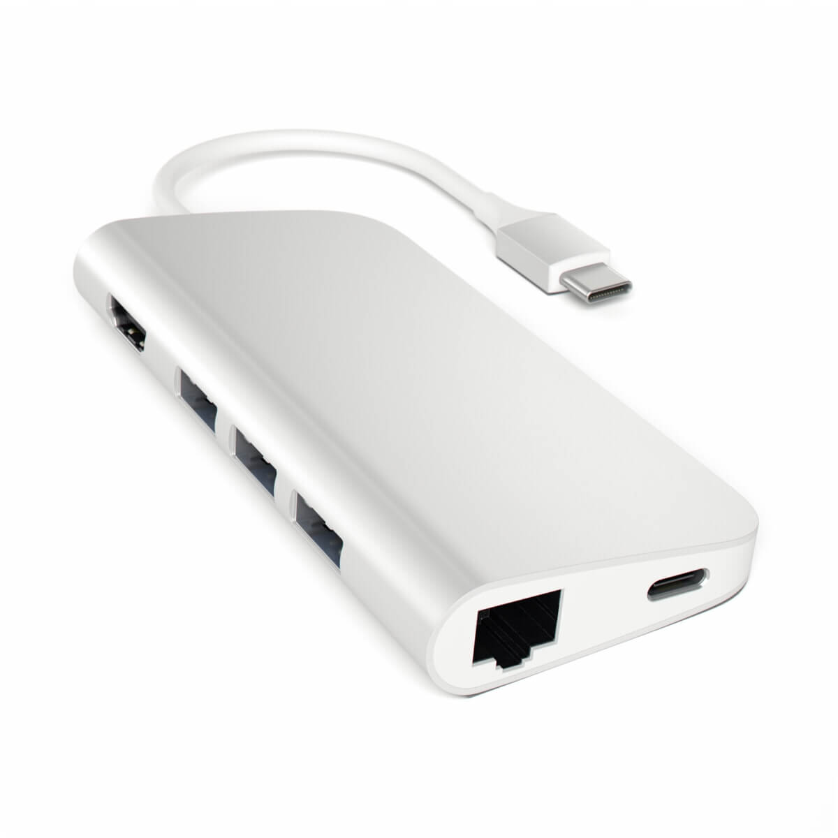 Satechi USB-C Aluminum Multiport Adapter - мултифункционален хъб за свързване на допълнителна периферия за компютри с USB-C (сребрист)