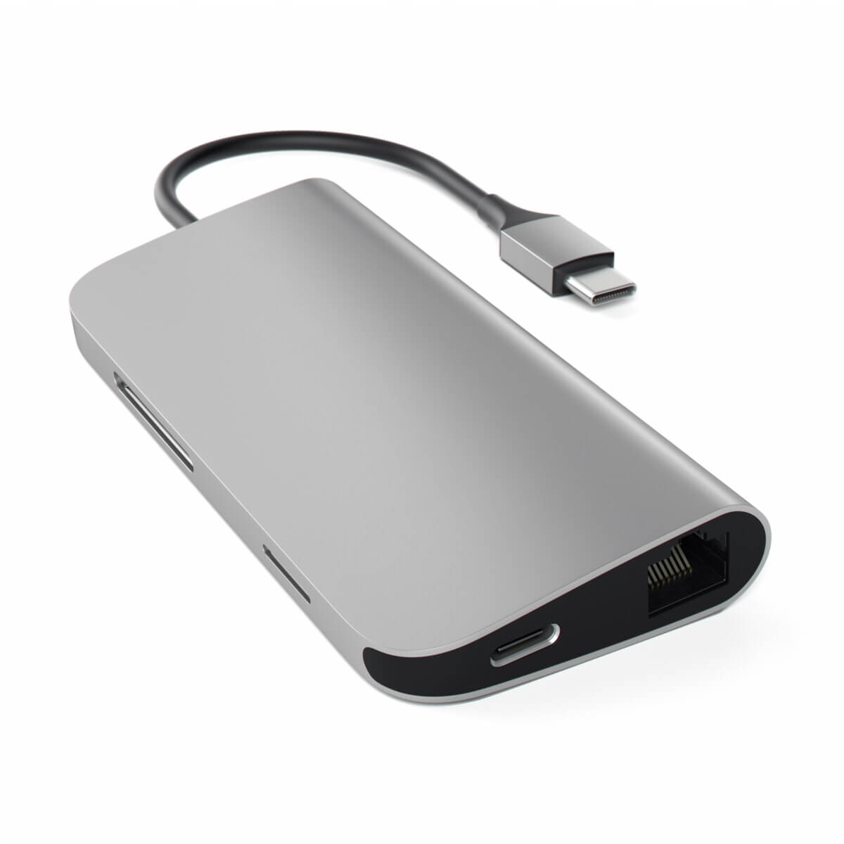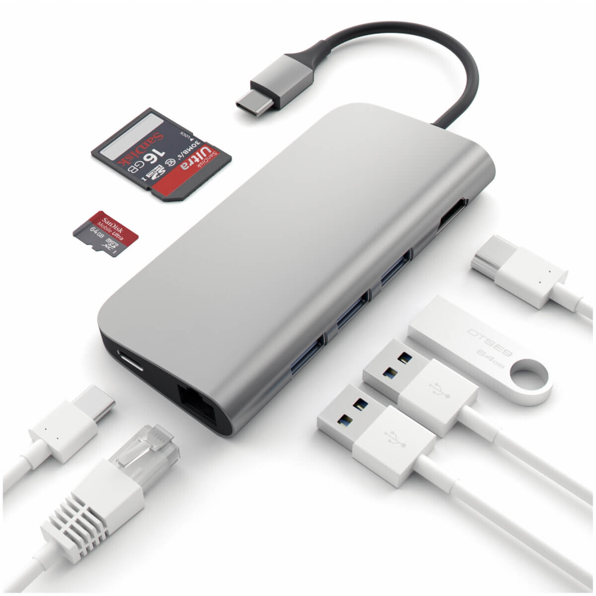 Satechi USB-C Aluminum Multiport Adapter - мултифункционален хъб за свързване на допълнителна периферия за компютри с USB-C (тъмносив)