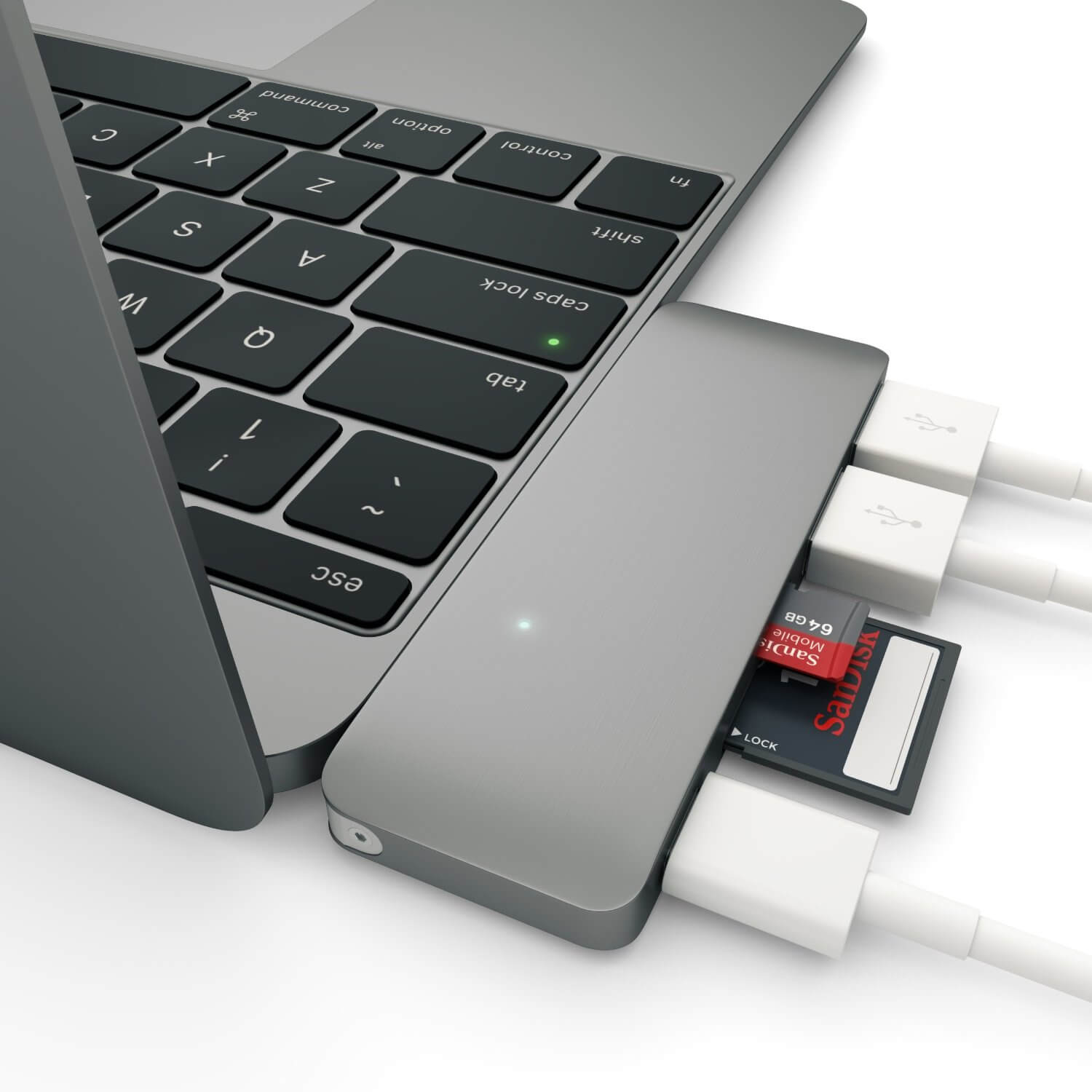 Satechi USB-C Pass Through USB Hub - мултифункционален хъб за свързване на допълнителна периферия за компютри с USB-C (тъмносив)