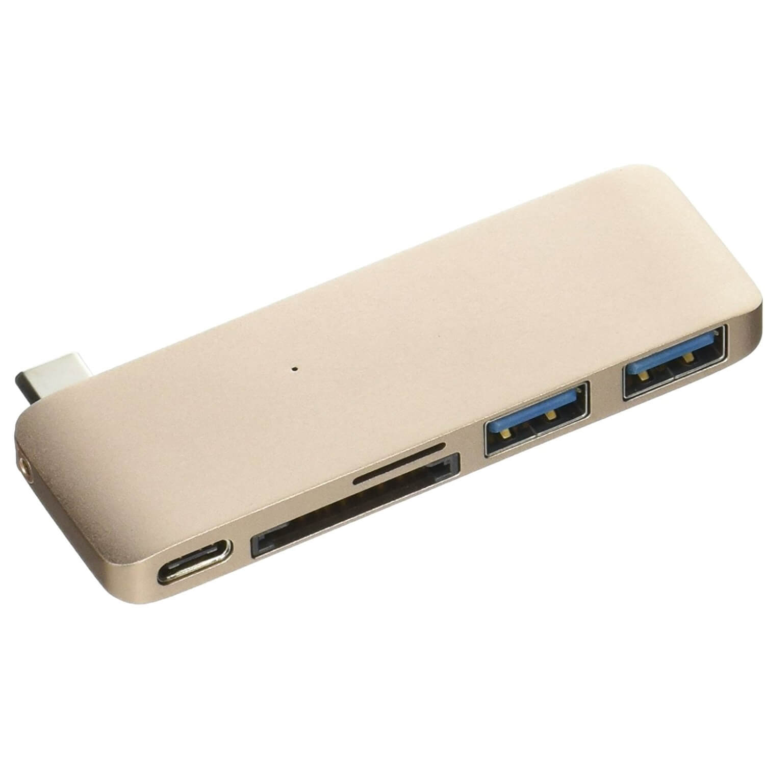 Satechi USB-C Pass Through USB Hub - мултифункционален хъб за свързване на допълнителна периферия за компютри с USB-C (златист)