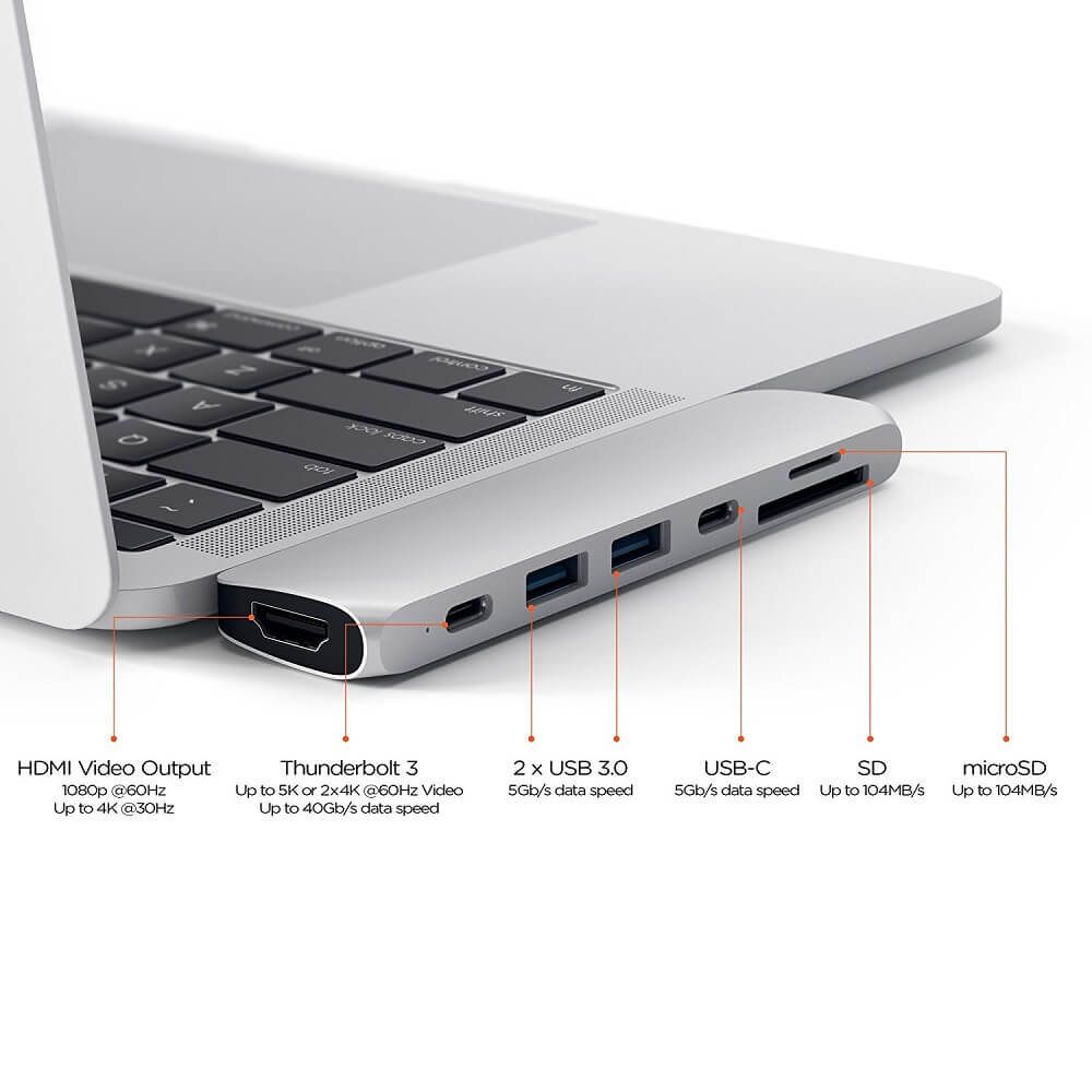 Satechi USB-C Pro USB Hub - мултифункционален хъб за свързване на допълнителна периферия за компютри с USB-C (сребрист)