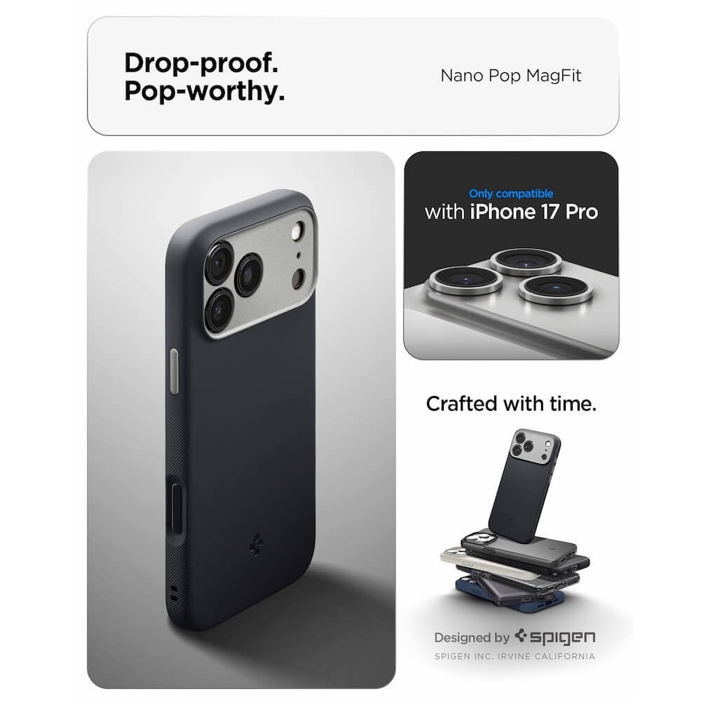 Силиконов (TPU) калъф с висока степен на защита с MagSafe за iPhone 17 Pro - Spigen Nano Pop MagSafe Case (черен)