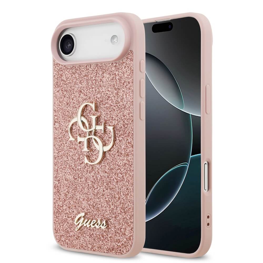 Силиконов (TPU) калъф за iPhone 17 Air - Guess PU Fixed Glitter 4G Metal Logo Case (розов)