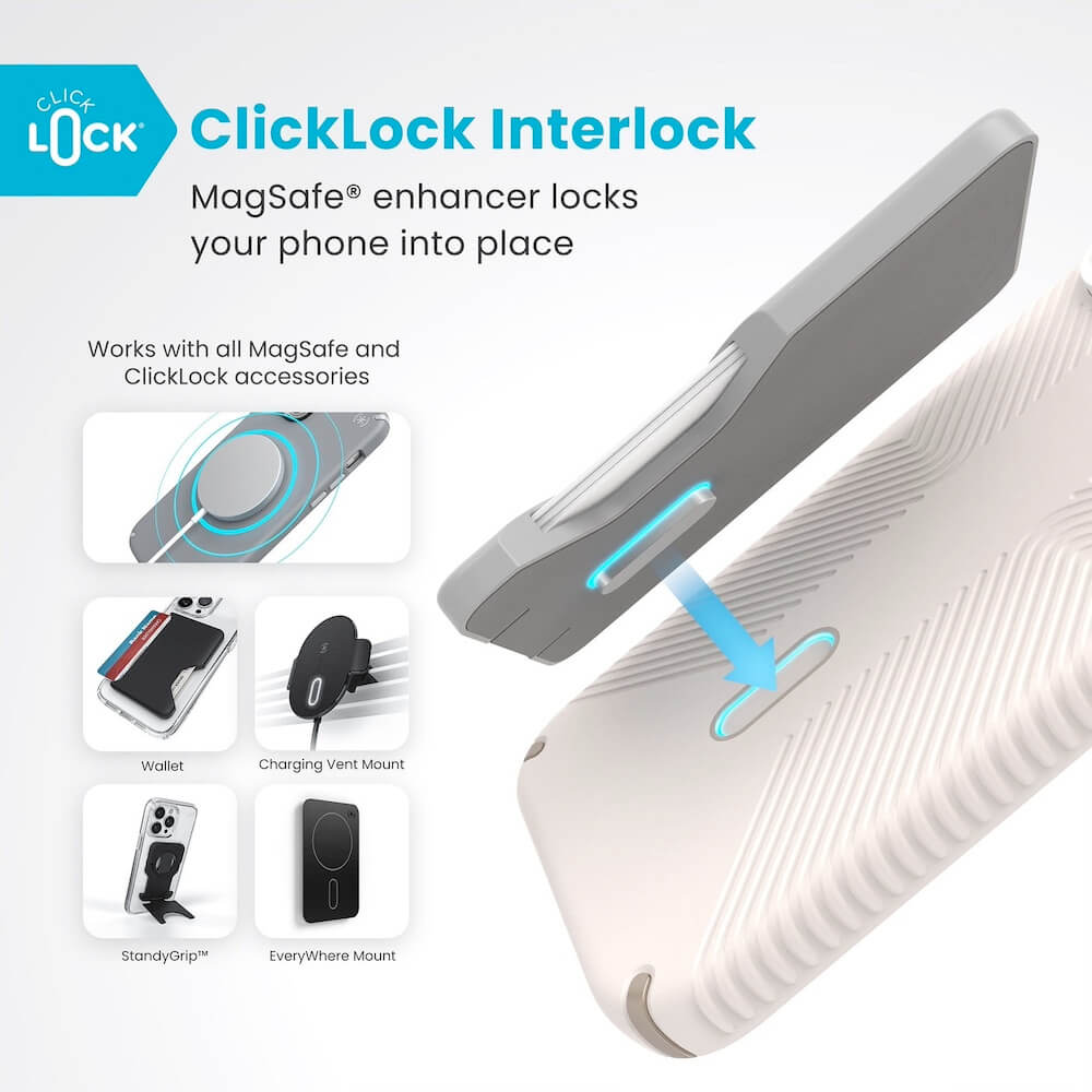 Speck Presidio 2 Grip MagSafe With ClickLock Case - удароустойчив хибриден кейс с Magsafe за iPhone 16 Pro Max (бял)