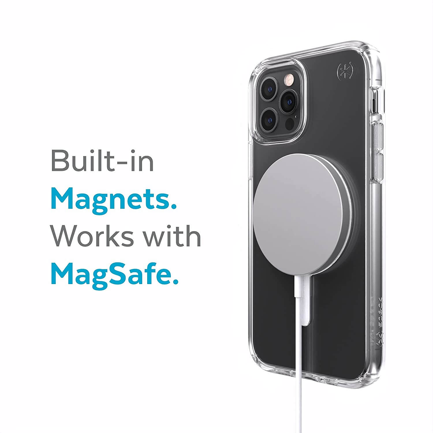- Кейсът е снабден с магнит, благодарение на който е съвместим с MagSafe аксесоари. Това е изцяло нов стандарт за бързо и лесно свързване на аксесоари и безжични зарядни устройства