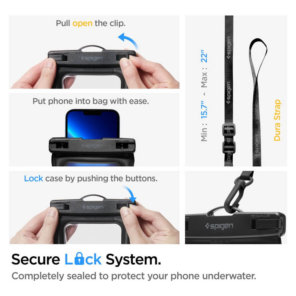 Spigen A621 Waterproof Wrist Bag with Phone Case IPX8 - водонепромокаема чанта с презрамка и водонепромокаем калъф за телефон (черен)