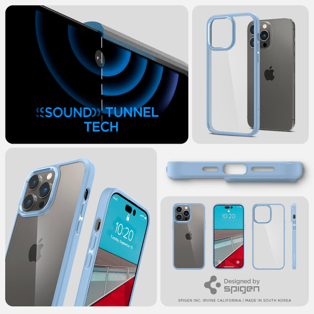 Spigen Crystal Hybrid Case - хибриден кейс с висока степен на защита за iPhone 14 Pro Max (син-прозрачен)