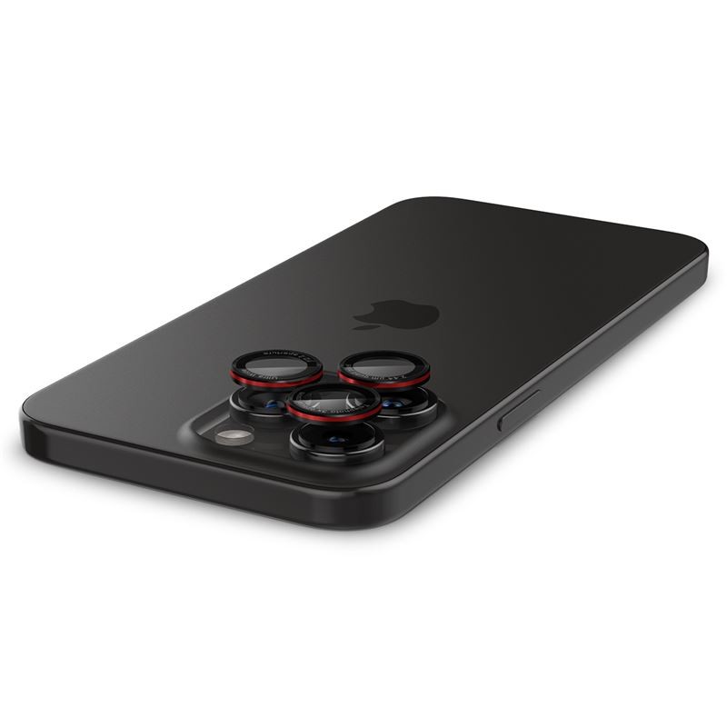 Spigen Glass tR EZ Fit Optik Pro Lens Protector 2 Pack - 2 комплекта предпазни стъклени лещи за камерата на iPhone 16 Pro, iPhone 16 Pro Max, iPhone 15 Pro, iPhone 15 Pro Max (черен-червен)