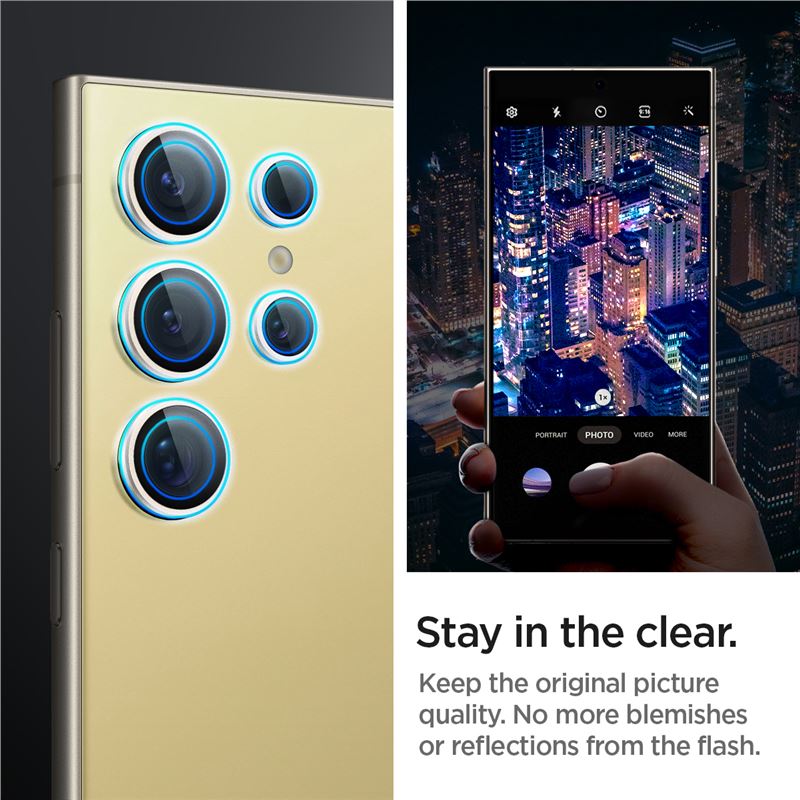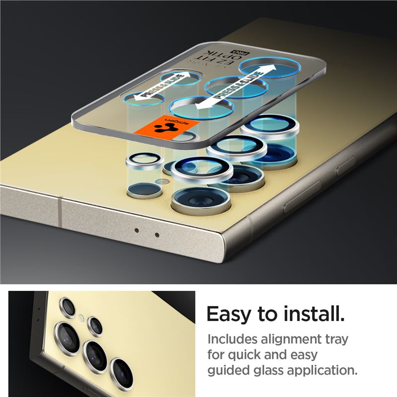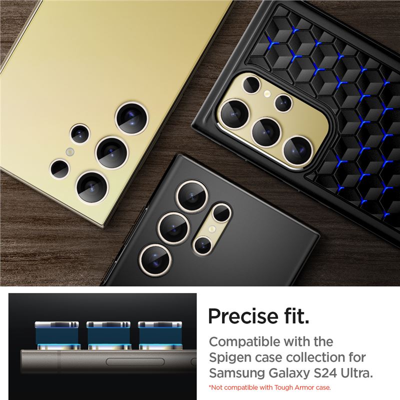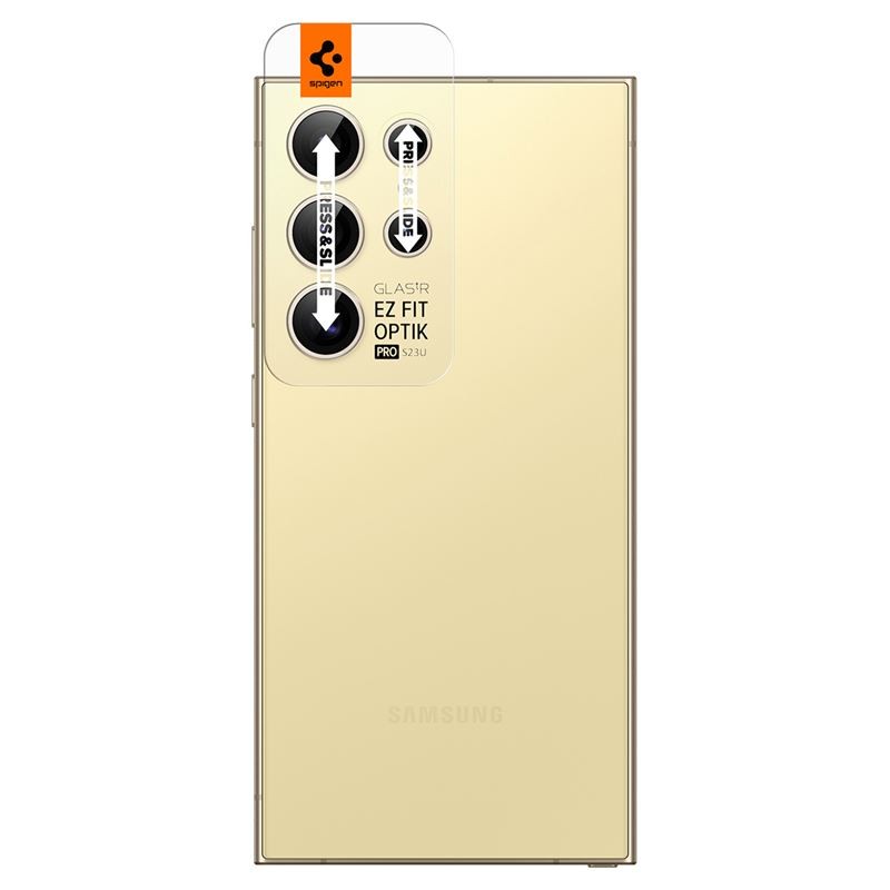 Spigen Glass.tR EZ Fit Optik Pro Tempered Glass 2 Pack - 2 комплекта предпазни стъклени лещи за камерата на Samsung Galaxy S24 Ultra (жълт)