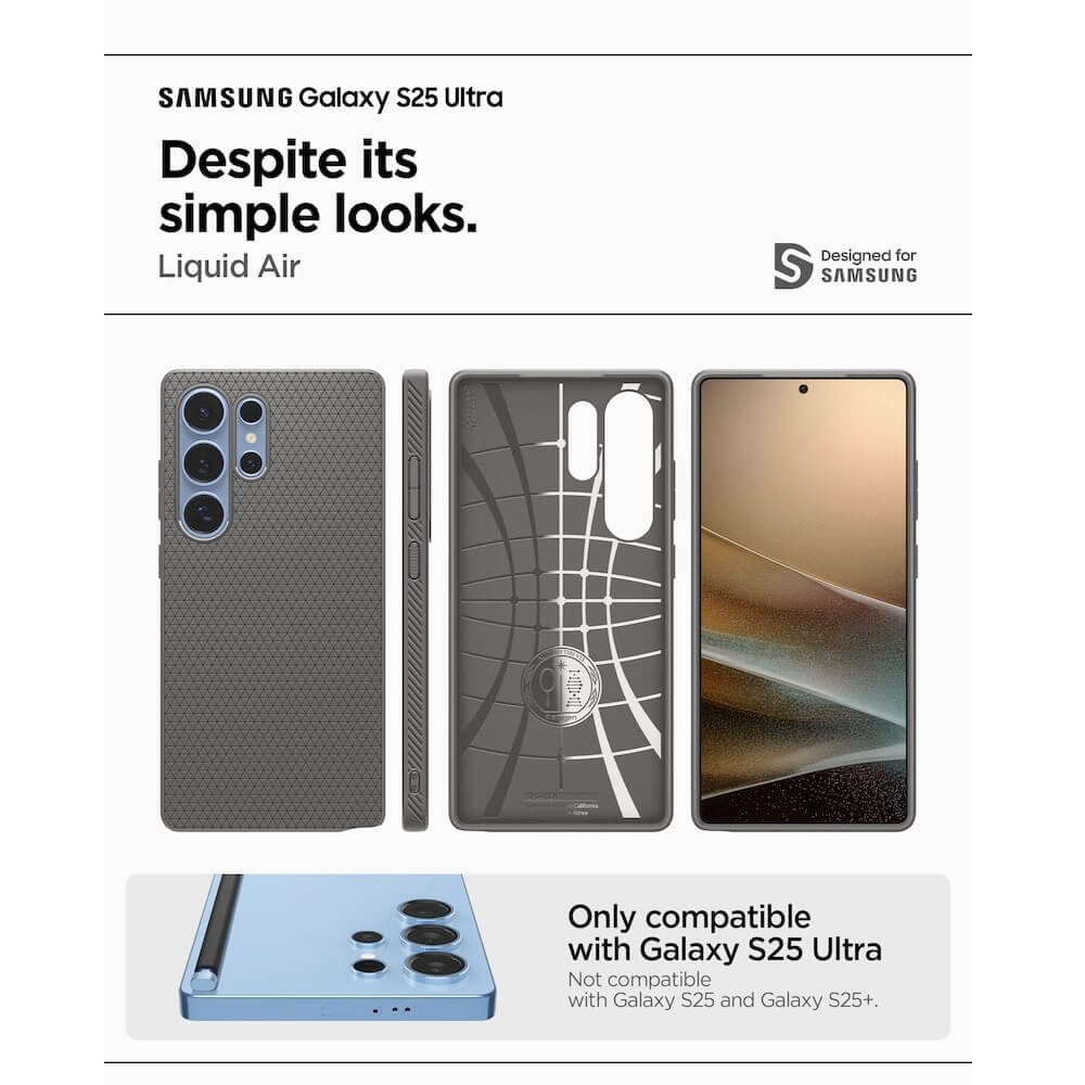 Spigen Liquid Air Case - силиконов (TPU) калъф с висока степен на защита за Samsung Galaxy S25 Ultra (сив)