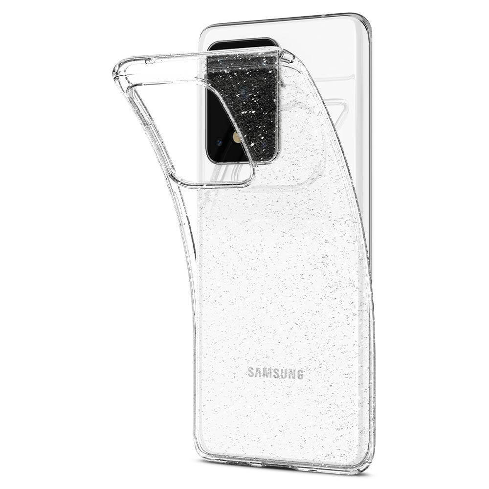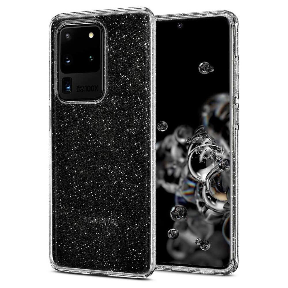 Spigen Liquid Crystal Glitter Case - тънък качествен силиконов (TPU) калъф за Samsung Galaxy S20 Ultra (прозрачен)