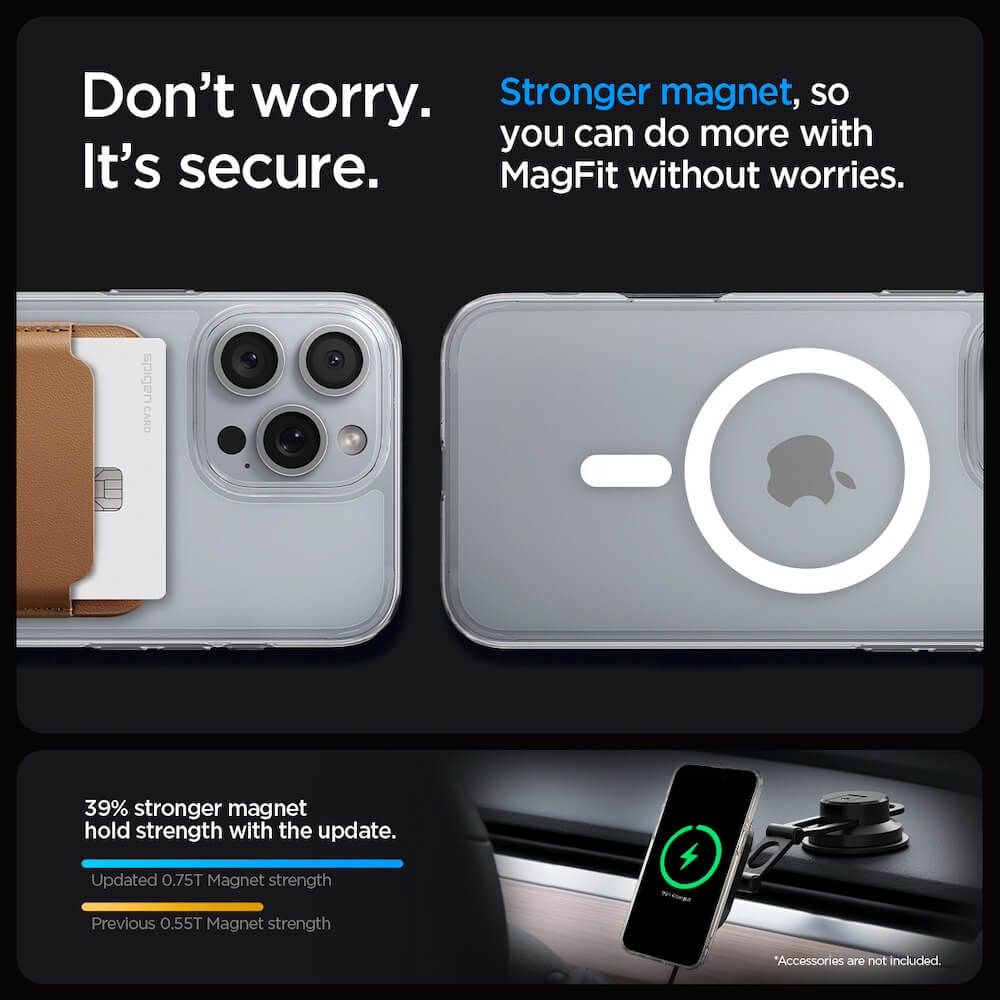 - • Калъфът е снабден с магнит, благодарение на който е съвместим с MagSafe аксесоари. Това е изцяло нов стандарт на Apple за бързо и лесно свързване на аксесоари и безжични зарядни устройства
