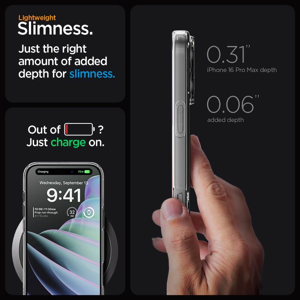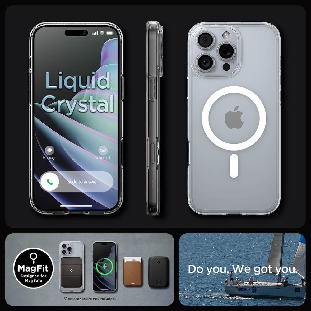 Spigen Liquid Crystal MagSafe Case - тънък силиконов (TPU) калъф с MagSafe за iPhone 16 Pro Max (прозрачен)