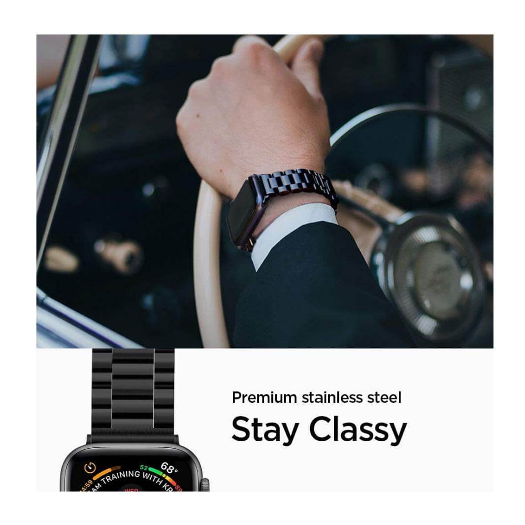 Spigen Modern Fit Band - стоманена каишка за Apple Watch 42mm, 44mm (черен)