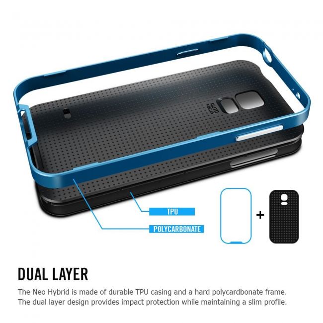 Spigen Neo Detachable Framer - удароустойчив хибриден кейс за Samsung Galaxy S5 (черен-син)