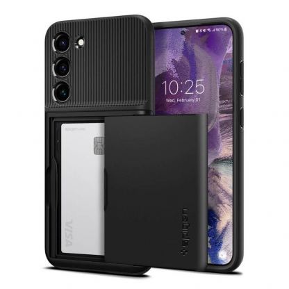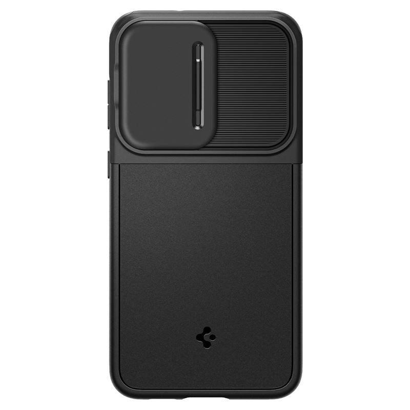 Spigen Optik Armor Case - тънък качествен силиконов (TPU) калъф с капак за камерата за Samsung Galaxy S23 Plus (черен)