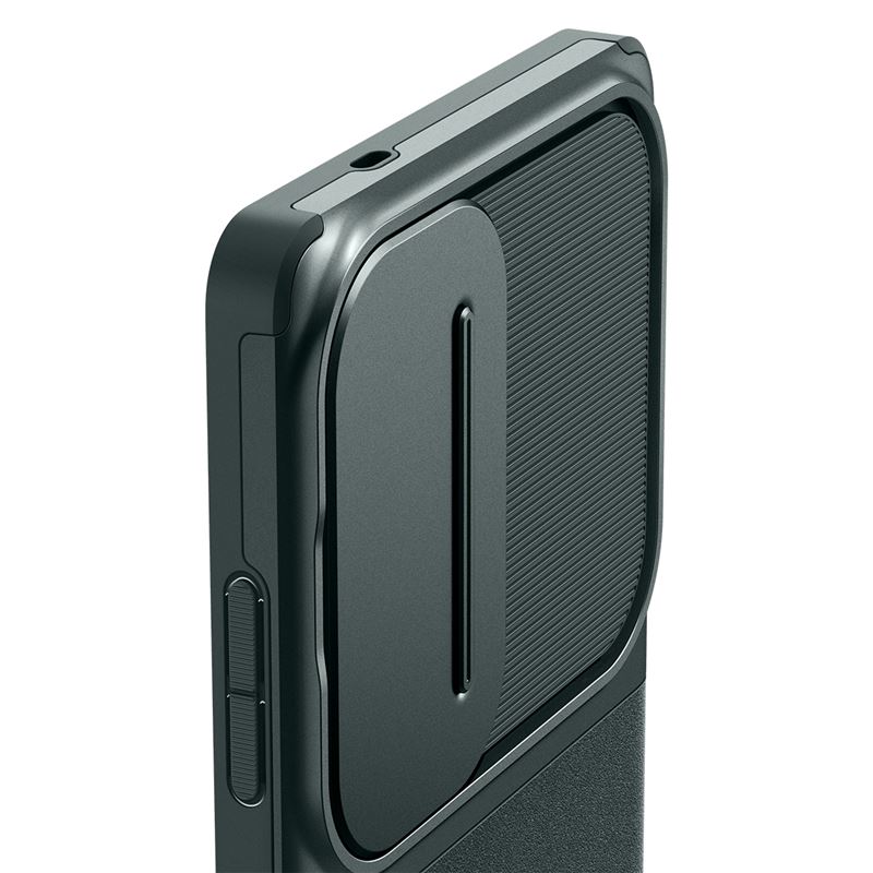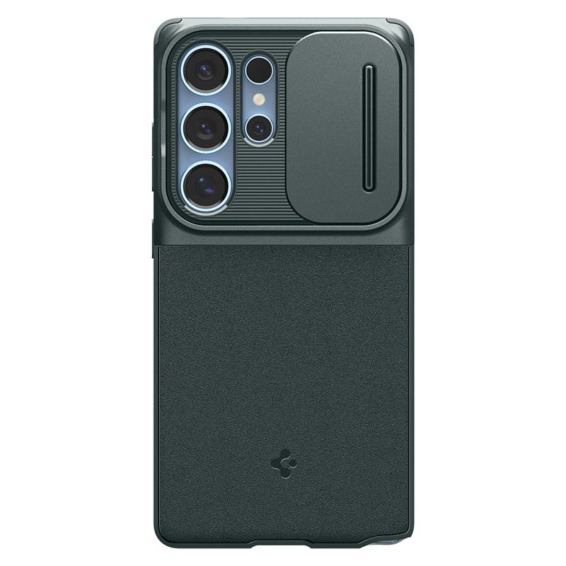 Spigen Optik Armor Case - тънък качествен силиконов (TPU) калъф с капак за камерата за Samsung Galaxy S25 Ultra (зелен)