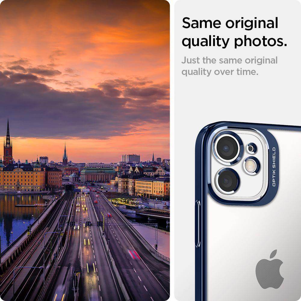 Spigen Optik Crystal Case - тънък силиконов (TPU) калъф за iPhone 12 mini (син-прозрачен)