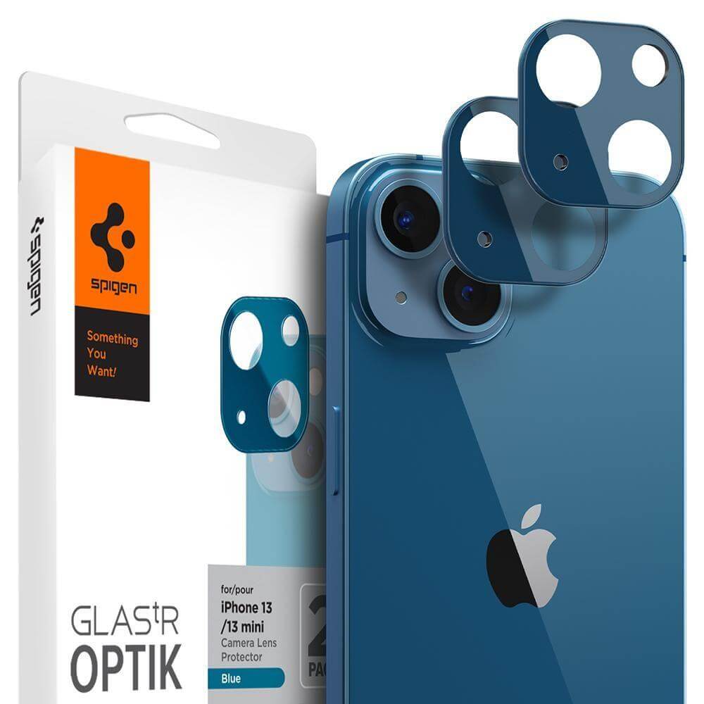 Spigen Optik Lens Protector - комплект 2 броя предпазни стъклени протектора за камерата на iPhone 13, iPhone 13 mini (син)