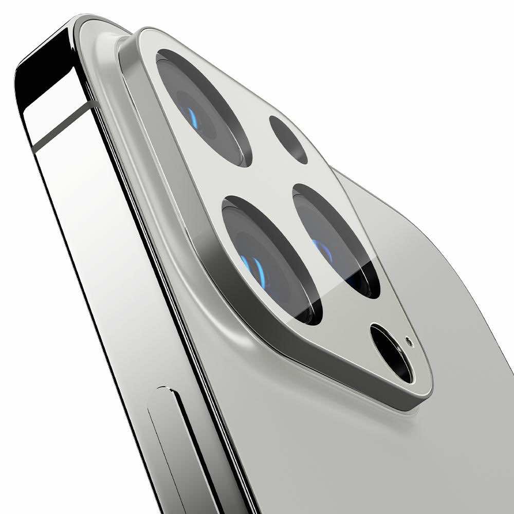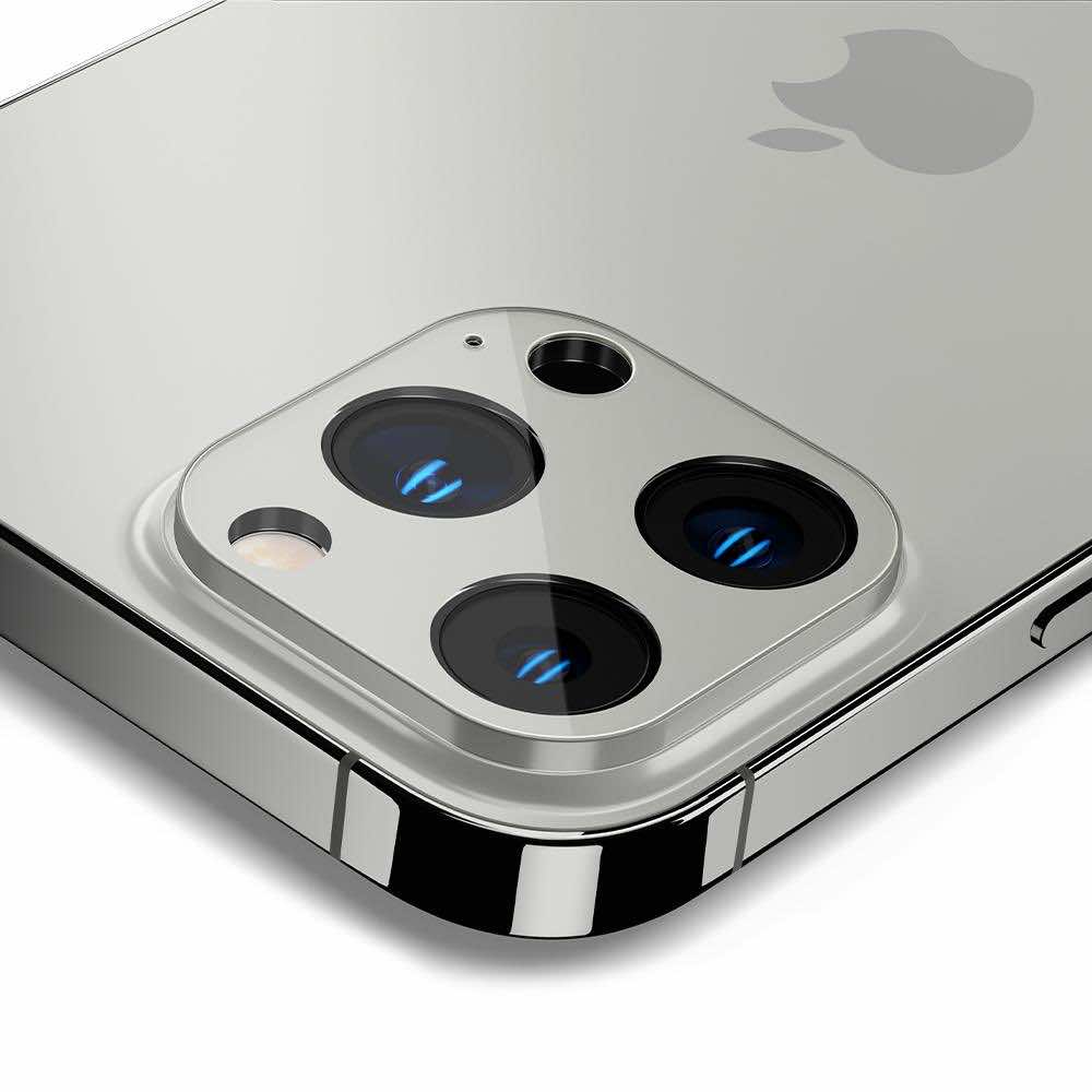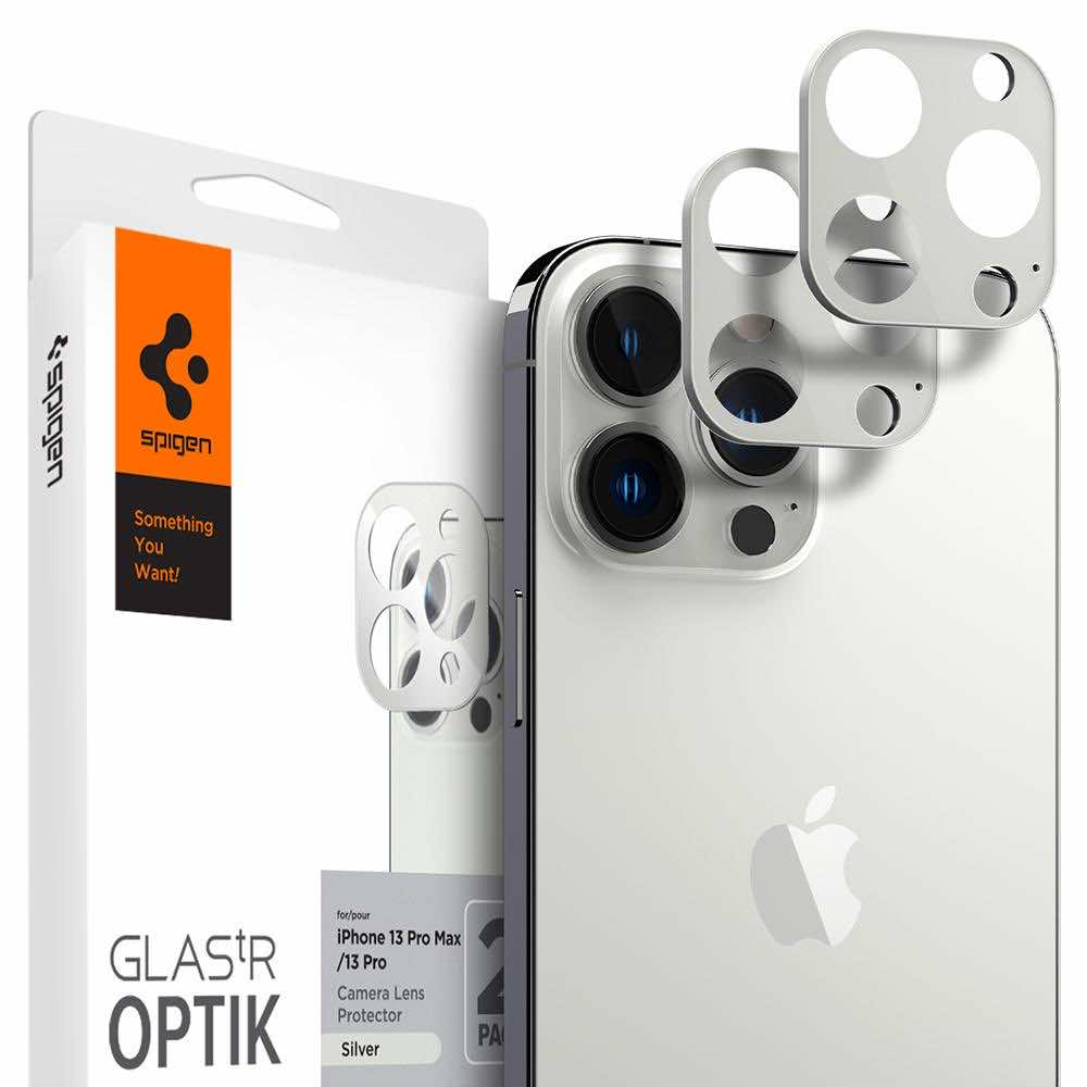 Spigen Optik Lens Protector - комплект 2 броя предпазни стъклени протектора за камерата на iPhone 13 Pro, iPhone 13 Pro Max (сребрист)
