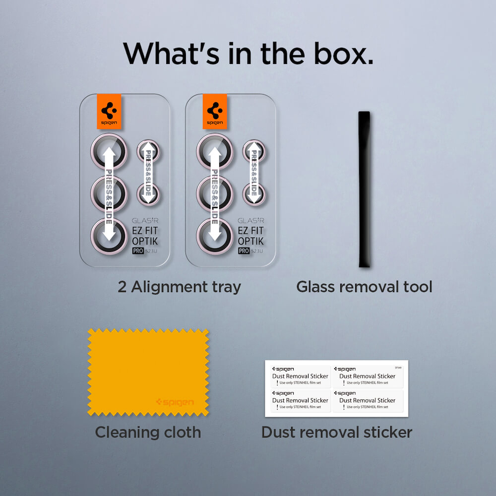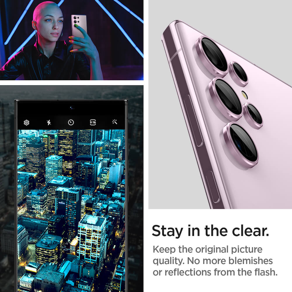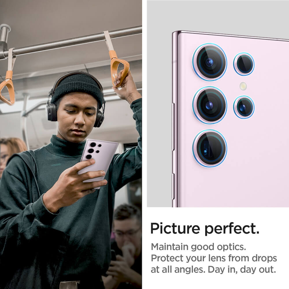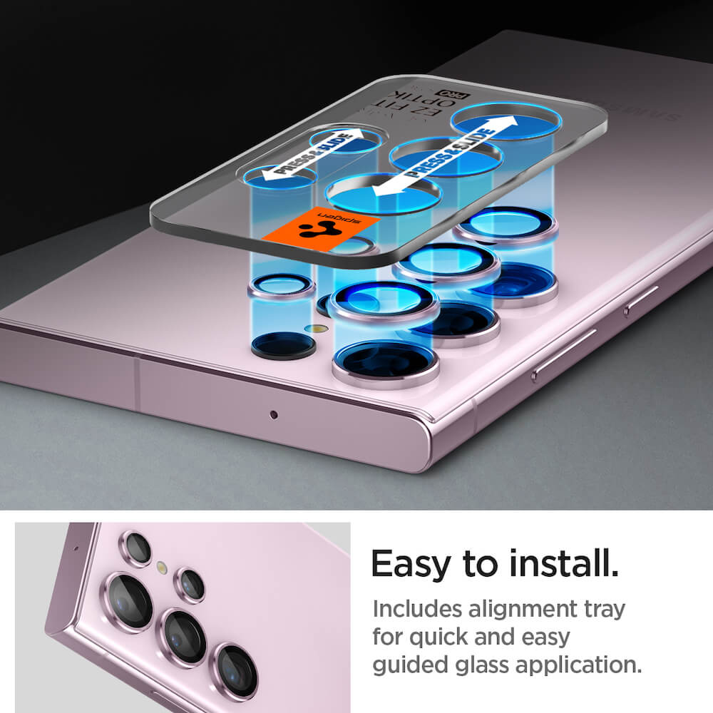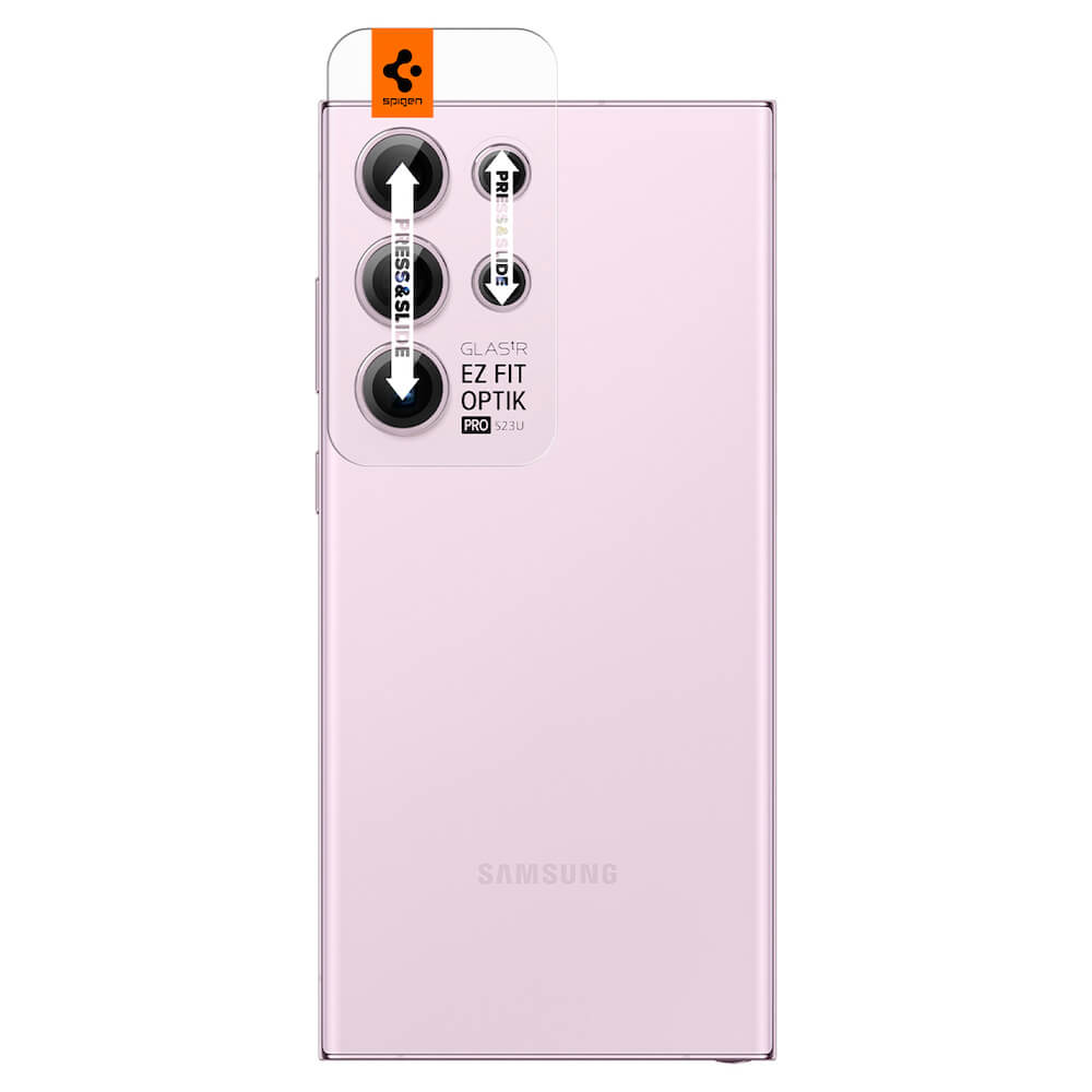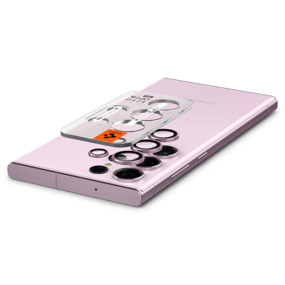 Spigen Optik Pro tR Ez Fit Lens Protector 2 Pack - 2 комплекта предпазни стъклени лещи за камерата на Samsung Galaxy S23 Ultra (розов)