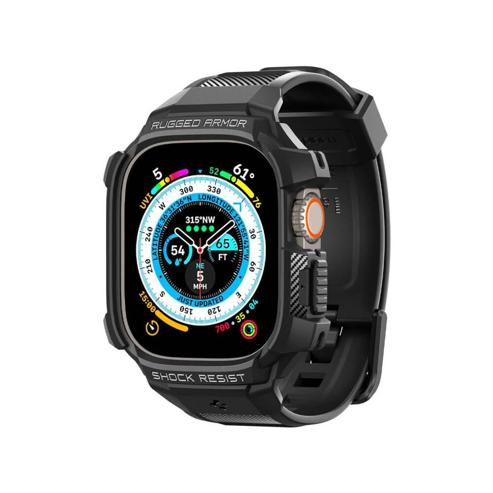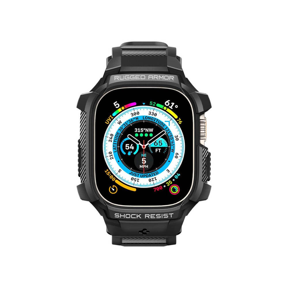 Spigen Rugged Armor Case Pro - удароустойчив TPU кейс с вградена каишка за Apple Watch Ultra 49мм (черен)