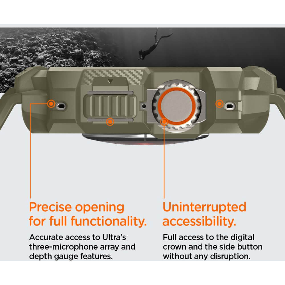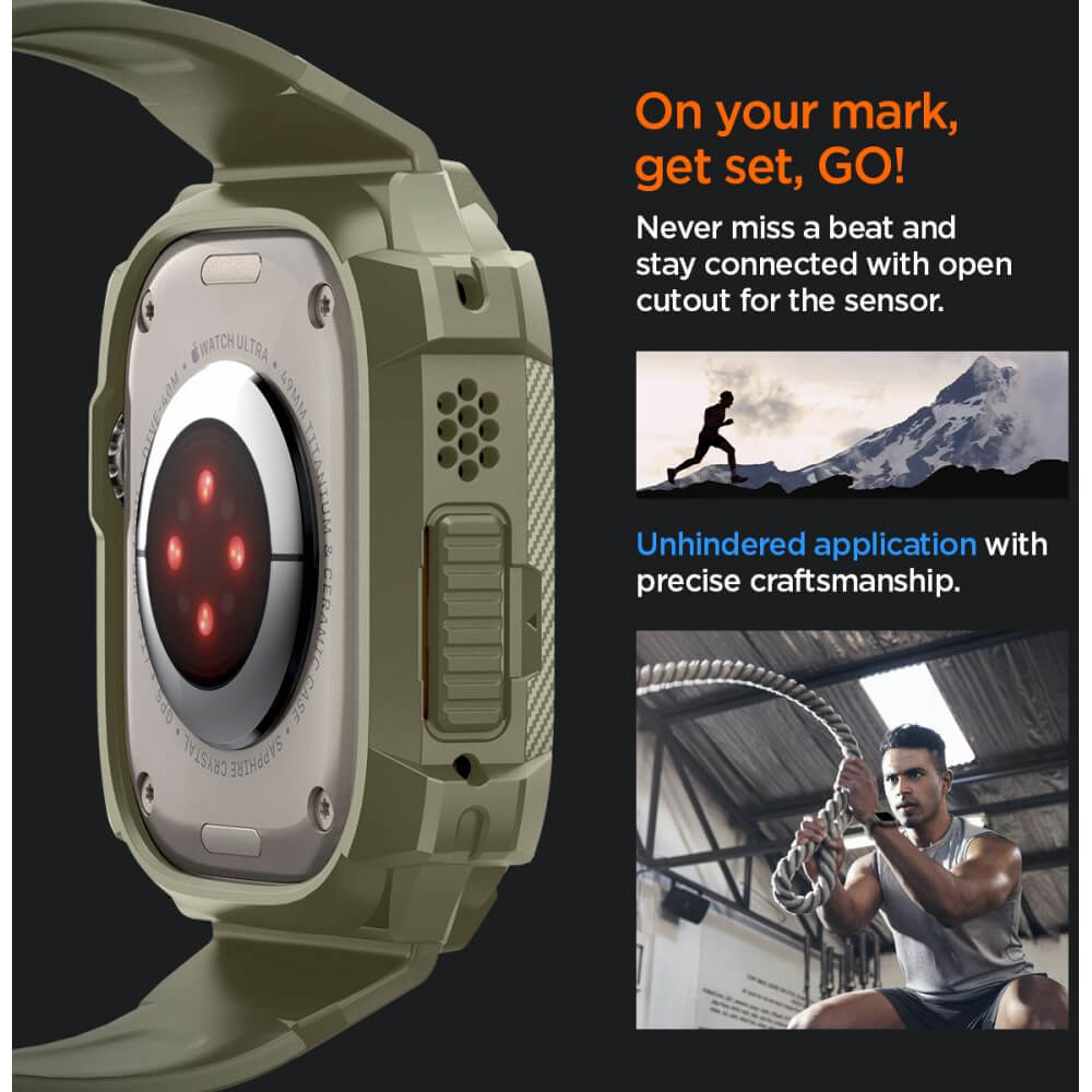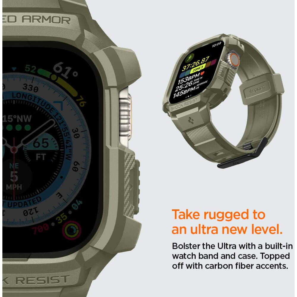 Spigen Rugged Armor Case Pro - удароустойчив TPU кейс с вградена каишка за Apple Watch Ultra 49мм (зелен)