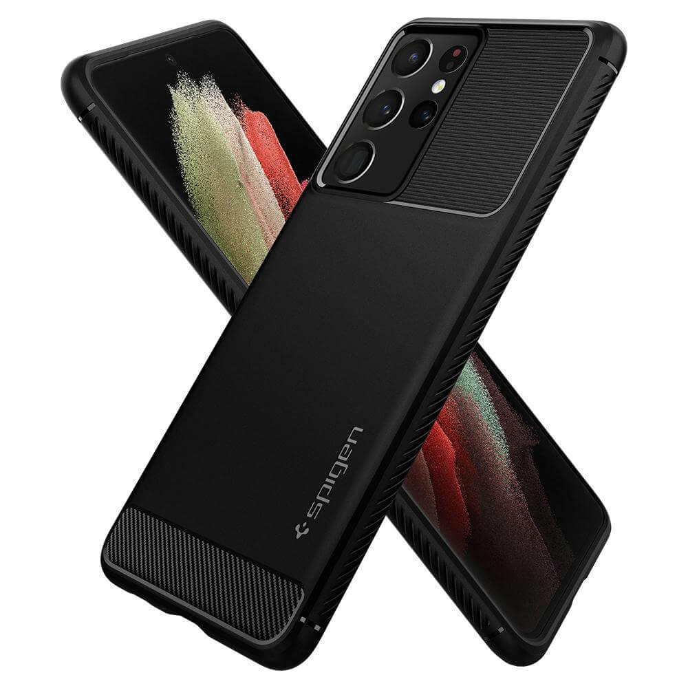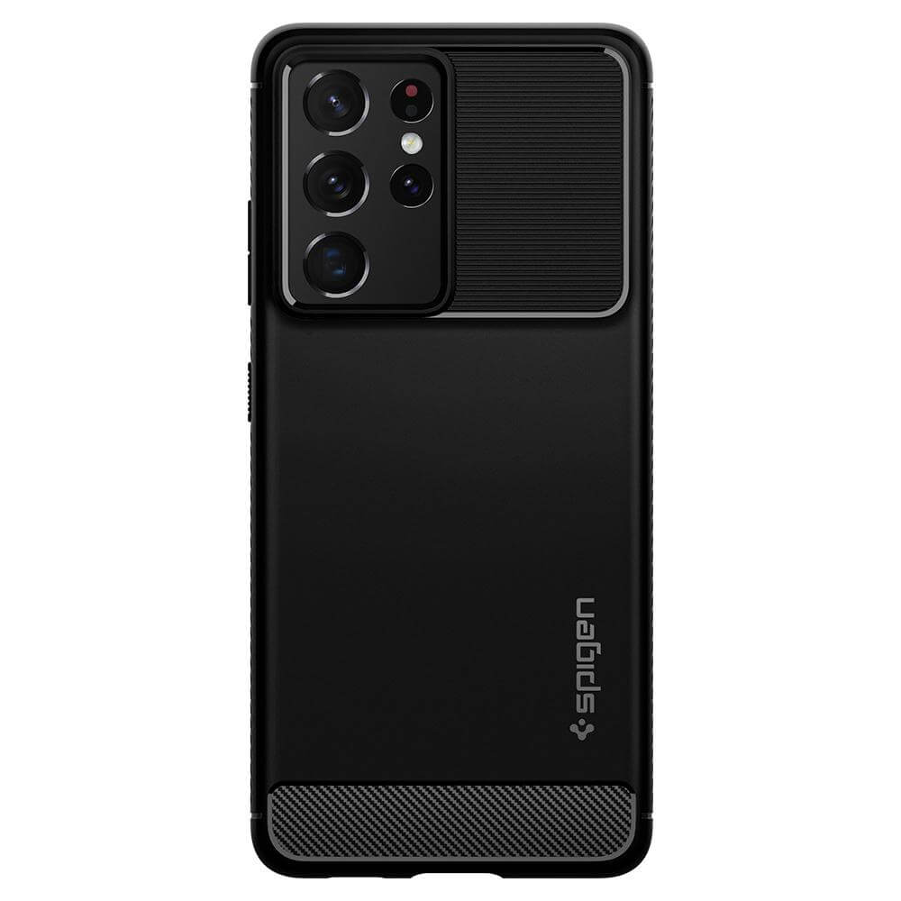 Spigen Rugged Armor Case - тънък качествен силиконов (TPU) калъф за Samsung Galaxy S21 Ultra (черен)