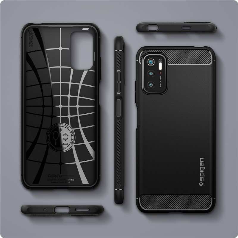 Spigen Rugged Armor Case - тънък качествен силиконов (TPU) калъф за Xiaomi RedMi Note 10 5G, Poco M3 Pro 5G (черен)
