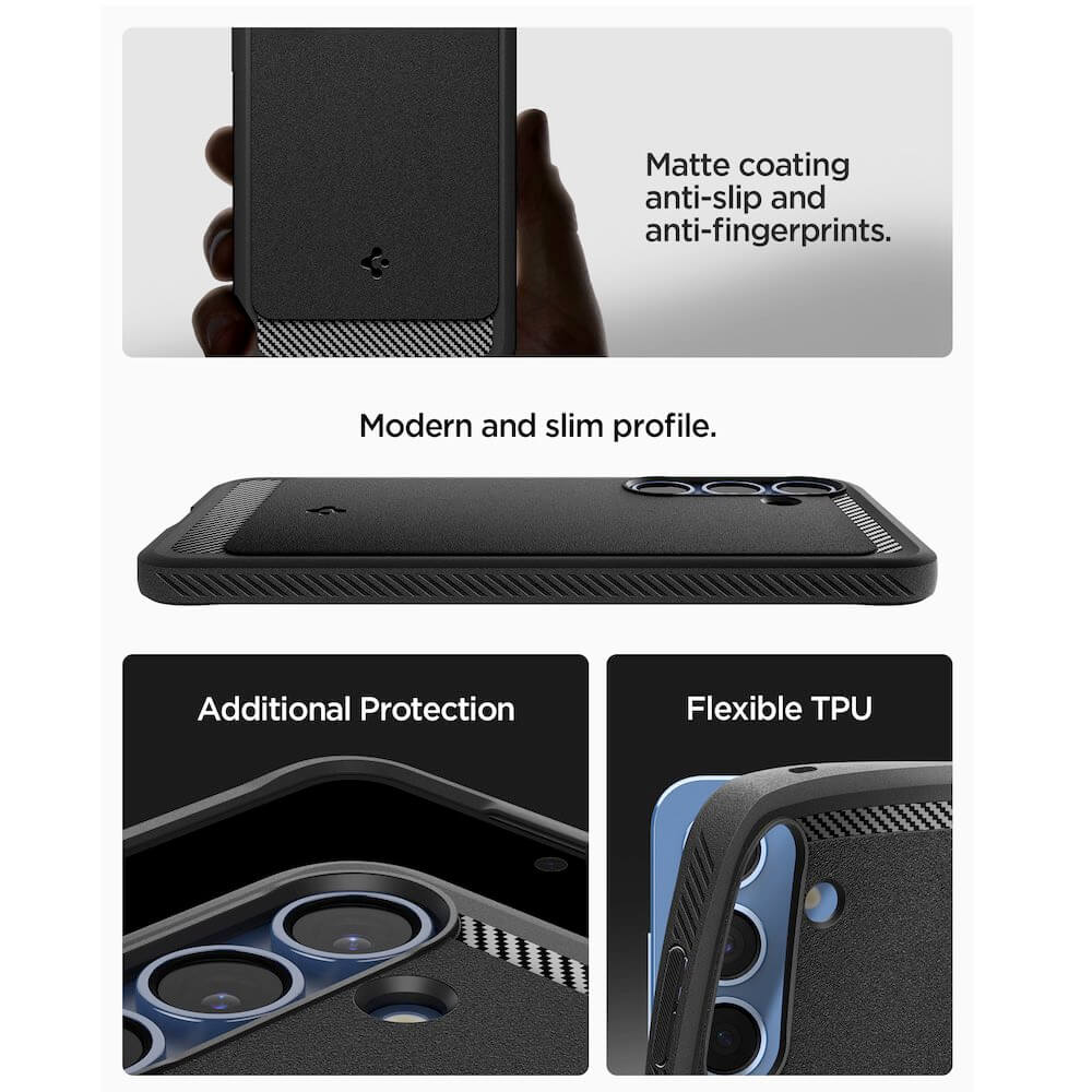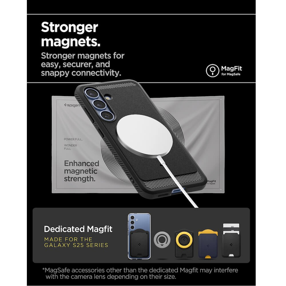 Spigen Rugged Armor MagSafe Case - удароустойчив силиконов (TPU) калъф с MagSafe за Samsung Galaxy S25 (черен)